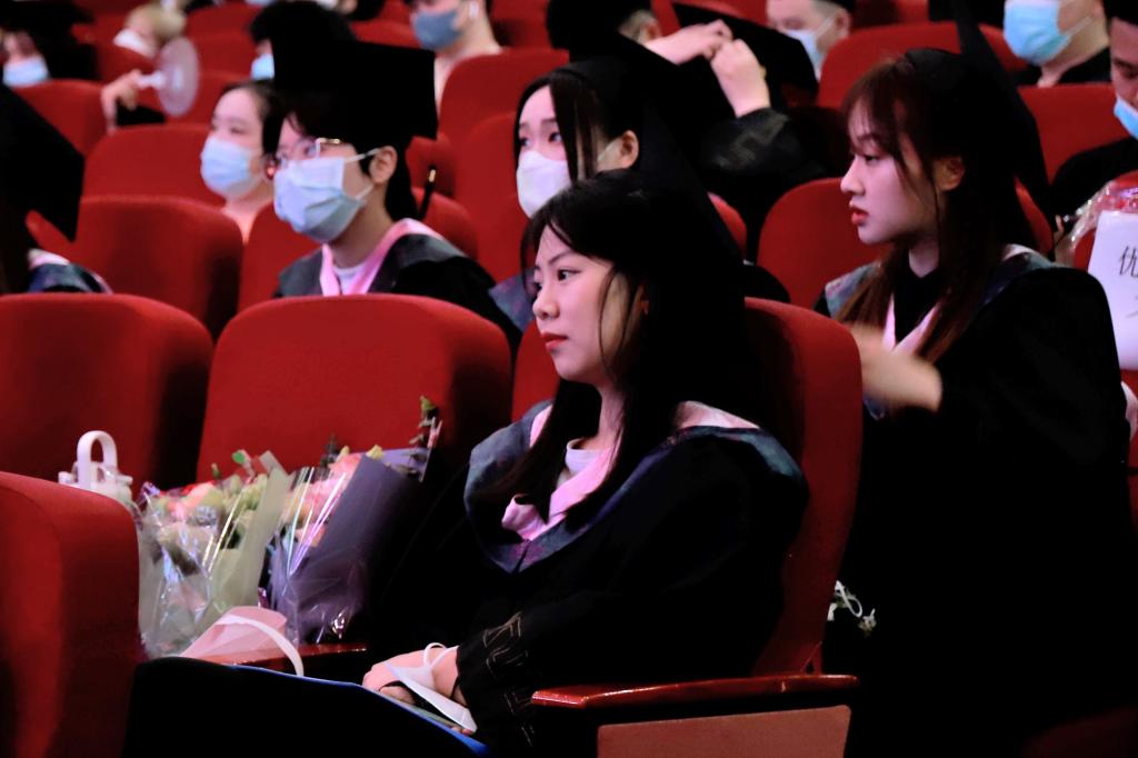 在正式典礼开始之前,与会人员观看毕业生祝福VCR,视频凝聚2022届毕业生点点滴滴,记录大家从青涩走向成熟的每一个细节,编写大家对校园一草一木的眷恋及对大学生活飞速而逝的感慨。学校领导、老师、同学们也在专题片里为本届毕业生送上了真挚祝福,每一帧每一镜都是对毕业学子的真切祝愿。