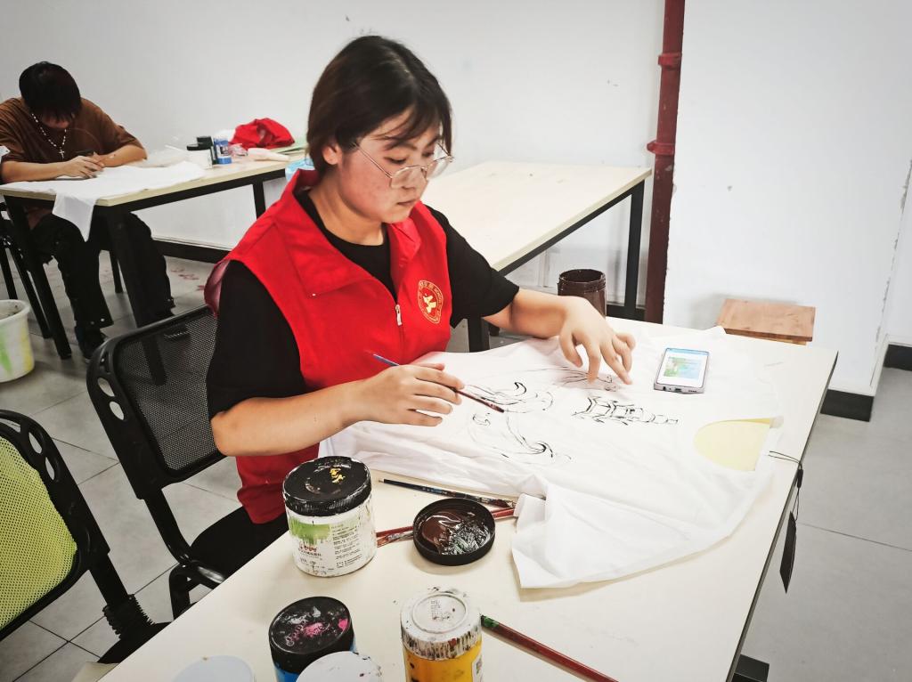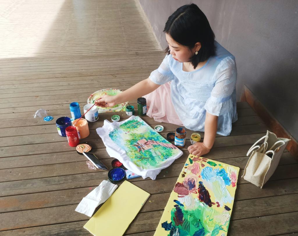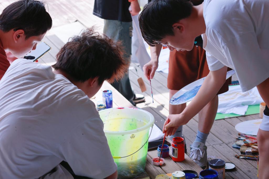 美益乡村”文化艺术服务团于2022年6月27日下午15:008在先锋剧场“举办“妙笔生画,艺彩生衣”文化衫制作活动。以艺术激情冲破主题,让色彩颜料融入衣衫,激发同学们交流、创作、合作激情。