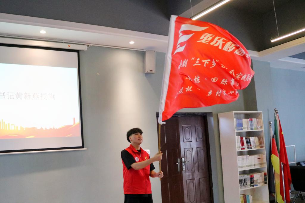 授旗仪式象征着本次“三下乡”社会实践活动正式拉开帷幕,黄新燕老师为队伍授予旗帜,接过印着“橄榄枝”的红色队旗,代表“橄榄枝”乡村振兴促进团出发的号角已经吹响,相信“橄榄枝枝”定能不忘初心、砥砺前行、牢记责任、不负众望,在实践中取得傲人的成绩。