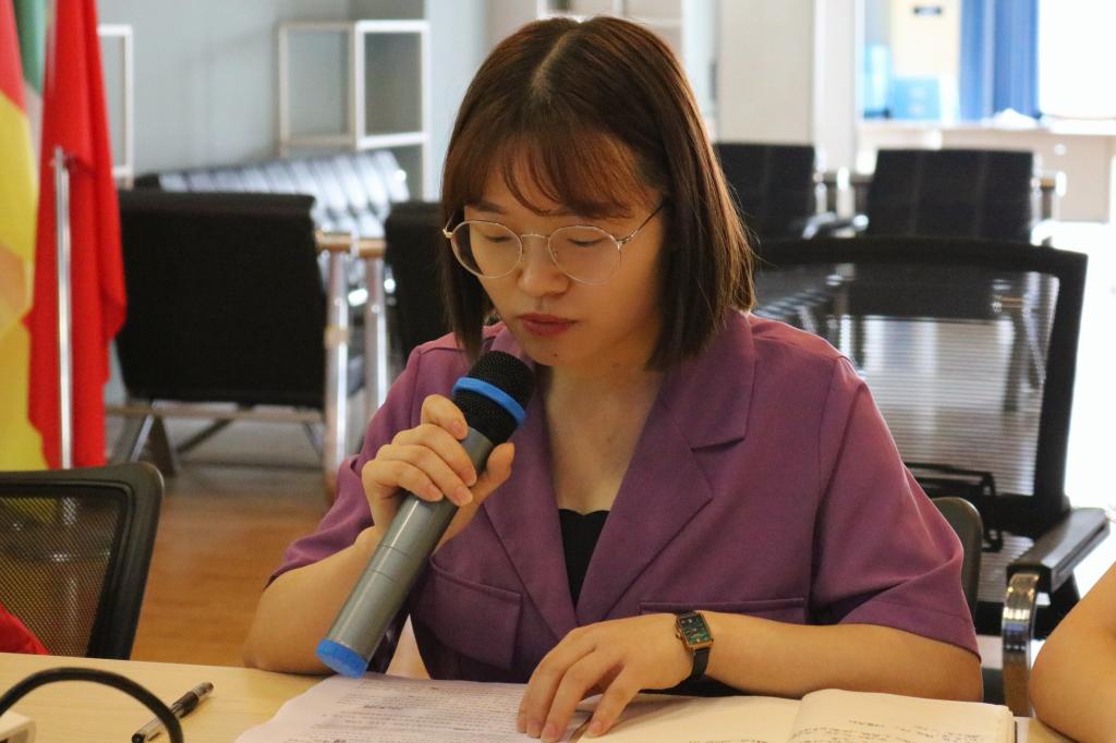 “我们是五月的花海,用青春拥抱时代……”嘹亮的声线展现出青年志愿者的精神、坚定着青年志愿者的初心!团歌激情奏唱之后,淬炼•国际商学院财务管理专业向文娇学姐通过录制视频的方式,向大家分享三下乡实践经验,向学姐叮嘱“橄榄枝”乡村振兴促进团的志愿者要自觉遵守团队纪律,去感受三下乡社会实践活动特有的魅力,在实践中奉献自我,磨炼自我,展现志愿者的青春朝气和热情服务的形象。