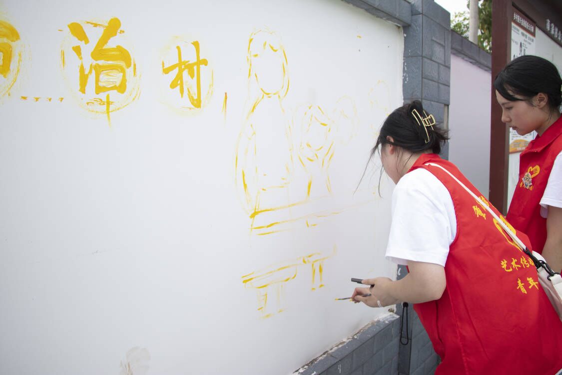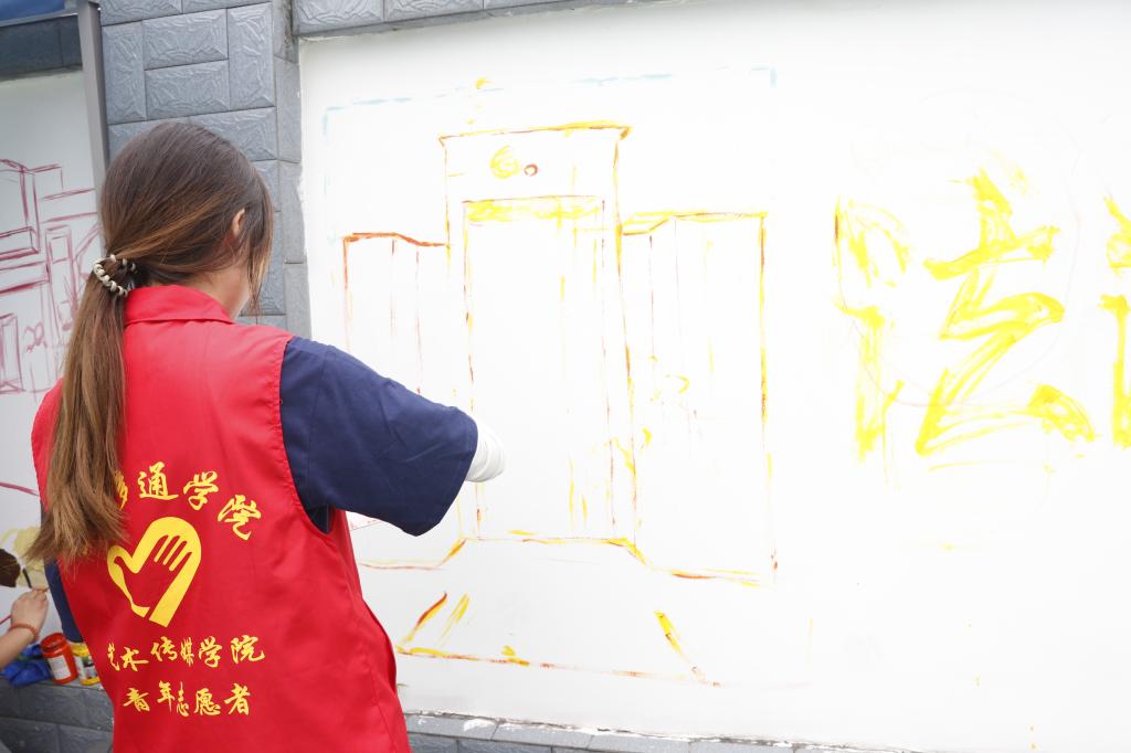 骄阳似火,心怀热望,蝉鸣夏日长,流光七月入乡村。面对工程量较大,但人员配备不足、物资短缺等现实困难时,“美益乡村”文化艺术服务团成员们不畏艰苦,勇于前行,团结合作,互帮互助。通过墙绘作品潜移默化的影响和提高村民文化素养、引领和谐新风,让文化韵味四溢乡村,同时让青年大学生在实践中贡献,在实践中成长,为助力苟家村和谐发展贡献青春力量,用实践行动为党的二十大和乡村振兴文化献礼。
