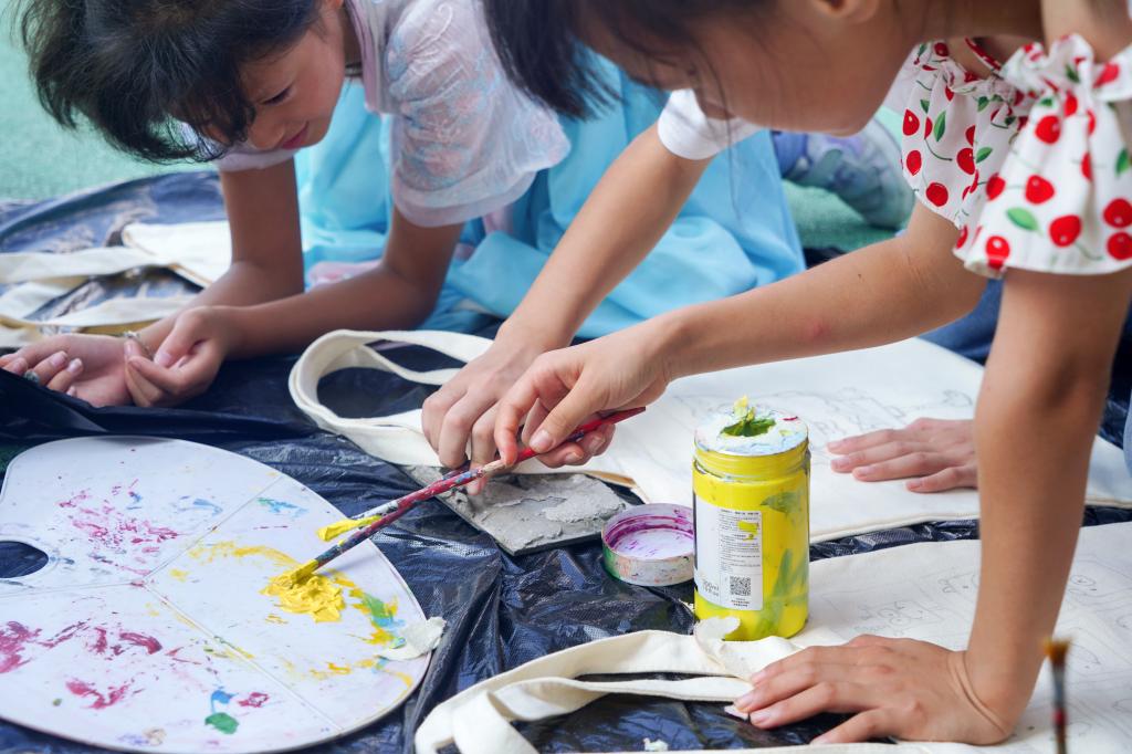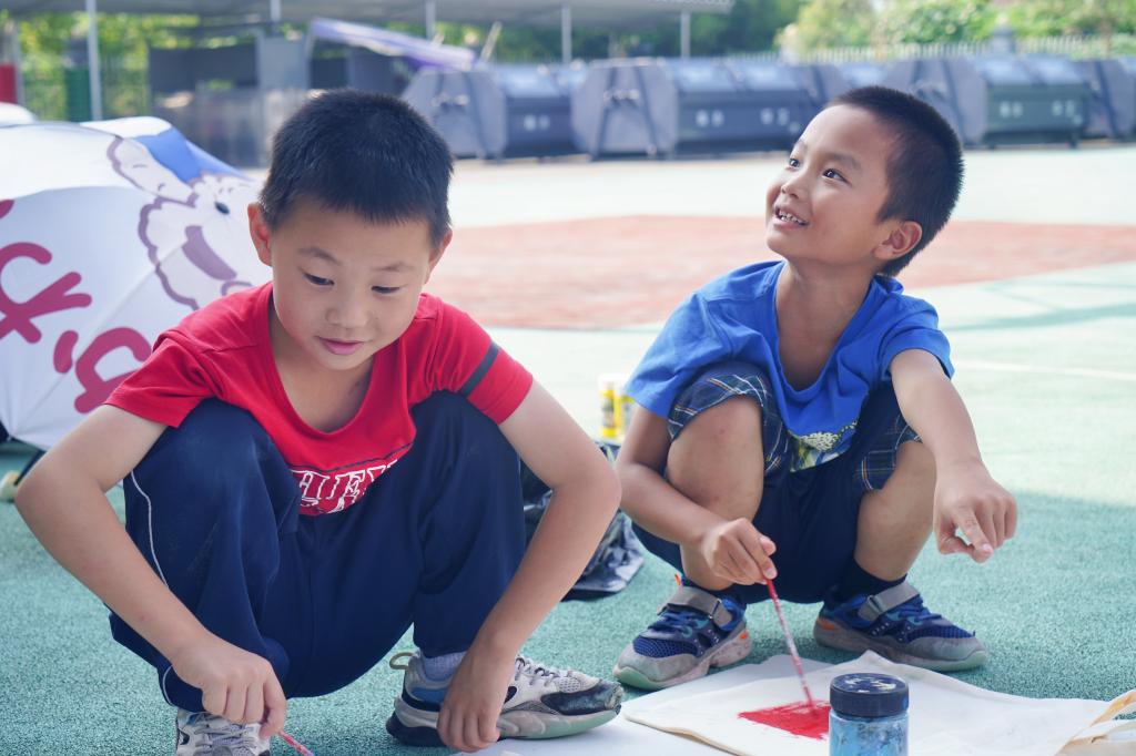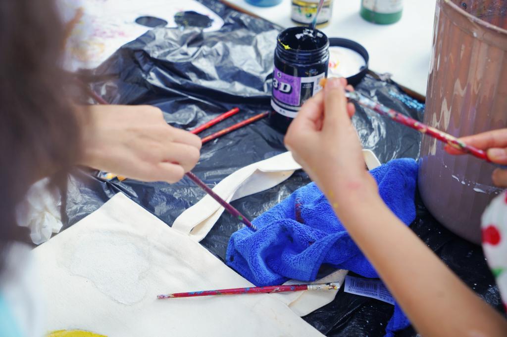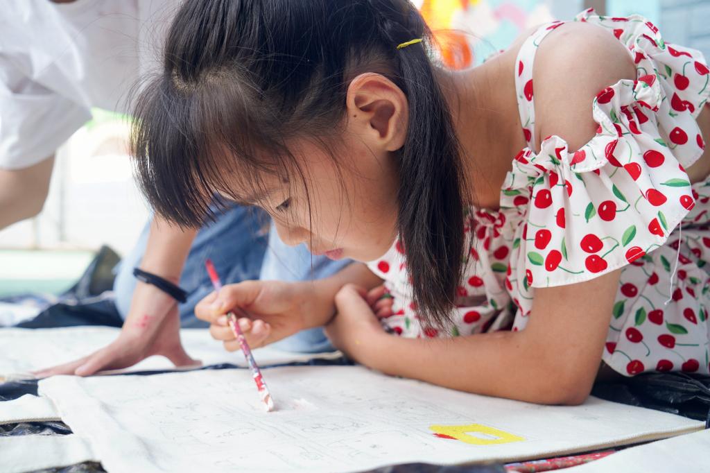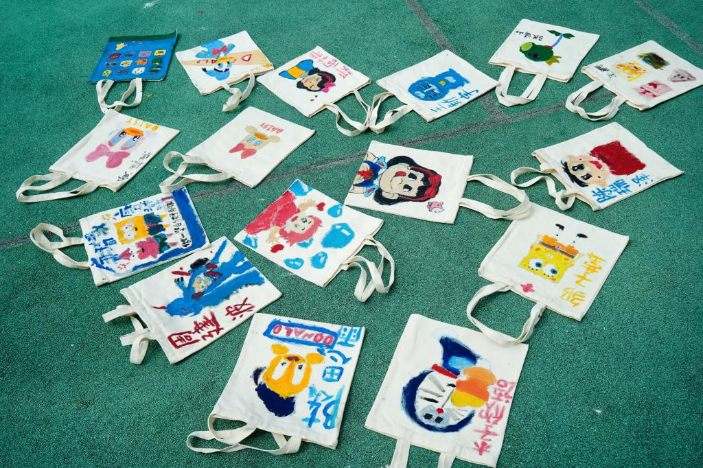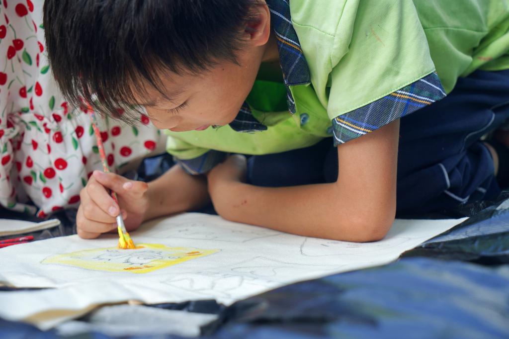万事开头难,部分小朋友由于缺乏对色彩搭配的认知、画笔运用也不太不熟悉,导致在绘画过程中出现了一些小问题,但在志愿者耐心的讲解下,所有的难题都迎刃而解。蝉鸣声声,一个个白色的帆布袋在这些“小艺术家”的手中都变成了创意十足的环保袋。小朋友在享受手绘带来乐趣的同时,也为低碳生活贡献出一份力量。