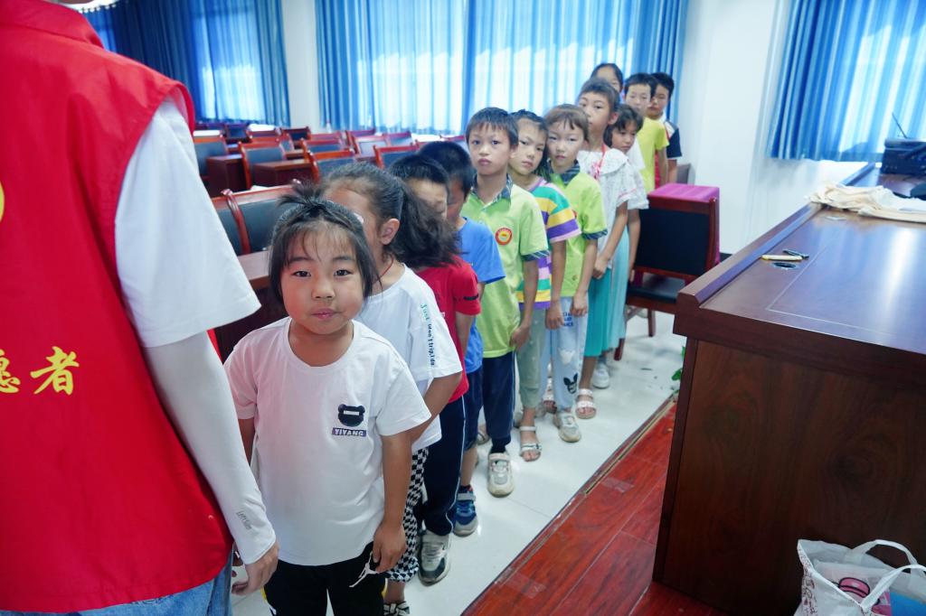 帆布袋以圆圈的形式摆在地上,在志愿者的安排下,小朋友们集合完毕,拿着属于自己的帆布袋,充满激情的喊着“美益乡村行,童心汇梦想”的口号。稚嫩的童音回响在篮球场上,少年的梦想在篮球场地上熠熠生辉,裹挟在大地上热浪吹遍了整个山城。