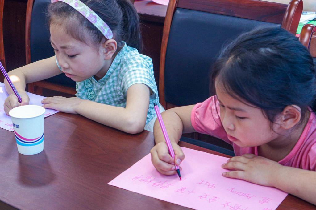 象形文字进课堂。“知书拾穗”的团队成员董鹏带领小朋友们回顾昨日中国汉字演变的课程内容,帮助小朋友们巩固古汉字的书写方式,让小朋友们更为准确地认识中国汉字的演变。在随后的临摹象形文字环节,一撇一捺都蕴含着中华五千年的文化更迭与发展;起笔、运笔和停笔之间彰显着小朋友们对写好汉字的渴望,五千年华夏文明的种子根植在沙南青禾的心灵深处。