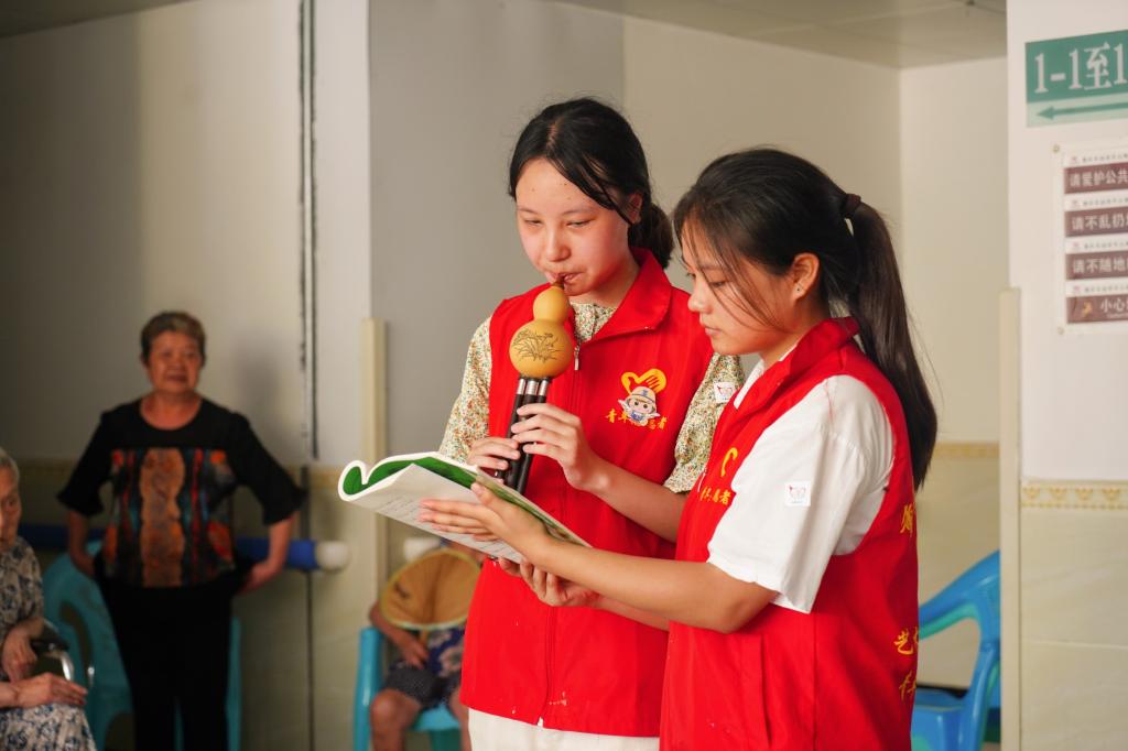 宣讲结束,志愿者们为老人们表演精心准备的节目。活力四射的舞蹈、情感饱满的朗诵、悠扬婉转的葫芦丝和口风琴,老人们的欢声笑语萦绕在大厅之中。志愿者们拿出热情,和老人们一起共唱红色革命歌曲,丰富老人们的精神生活,以耐心和爱心温暖老人。