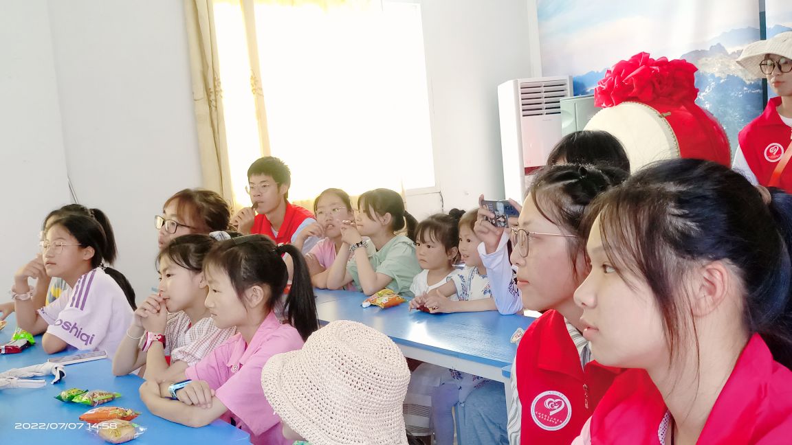 蝉鸣迎着盛夏,暑气蒸熏,可这阳光挡不住志愿者们的活力与热情。2022年7月7日“赓续红粹,移綦黔行”党史学习教育团在重庆市黔江区水市镇学雷锋志愿服务站以“宣扬红色精神,宣传红色故事”为活动主题带领小朋友们进行党史宣讲活动。101年的风雨兼程,101年伟大跨越,面对新时代的“新答卷”,志愿者们以党史学习教育为契机,进行了本次的三下乡青年志愿活动,活动主要以党史文化宣传为主,旨在传承党史文化、关爱儿童、激发青年学生的爱国热情。