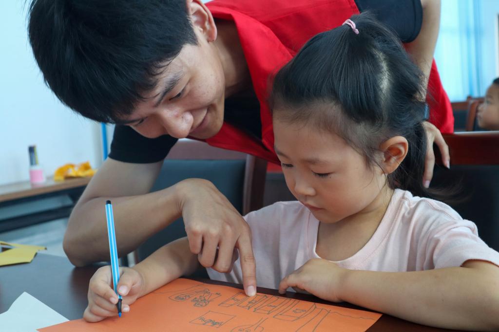地球是人类共同的家园,在环保知识课堂的最后环节中,“知书拾穗”的团队成员为小朋友们提前准备好画笔和彩纸,让小朋友们画出心目中美好家园的模样。小朋友们手握彩笔,尽情在画纸上挥舞着,一笔一划都描绘着他们心中所想,稚嫩的手、纯真的心,创造了一幅幅独特的画,想要通过自己的努力保护彩色地球,打造出秀美山河。