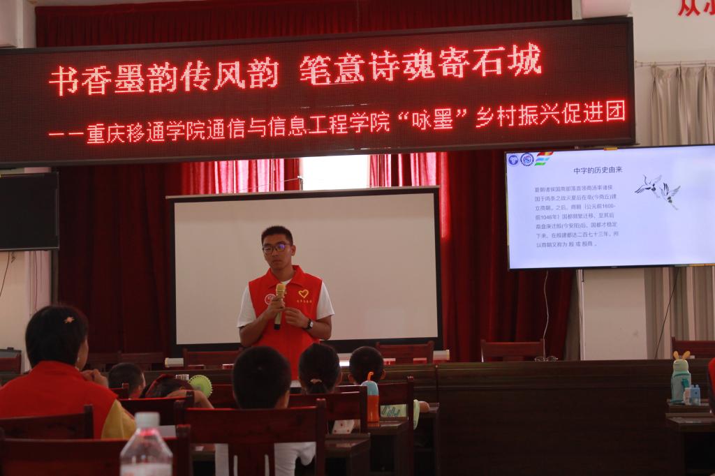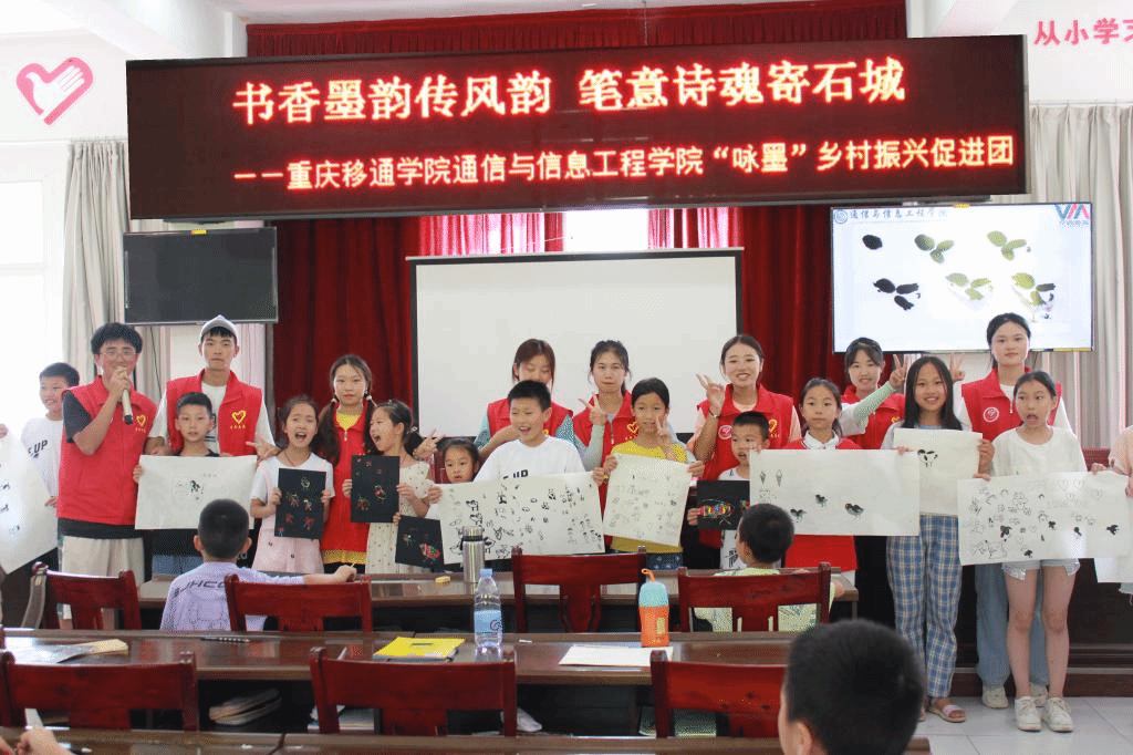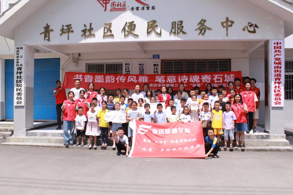 2022年7月9日,重庆移通学院通信与信息工程学院“咏墨”乡村振兴促进团在黔江区青坪社区持续开展暑期“三下乡”社会实践活动。团队组织和开展了包括“咏墨”之《字从遇见你》汉字学习会、妙笔生“画”实践课等多项内容。