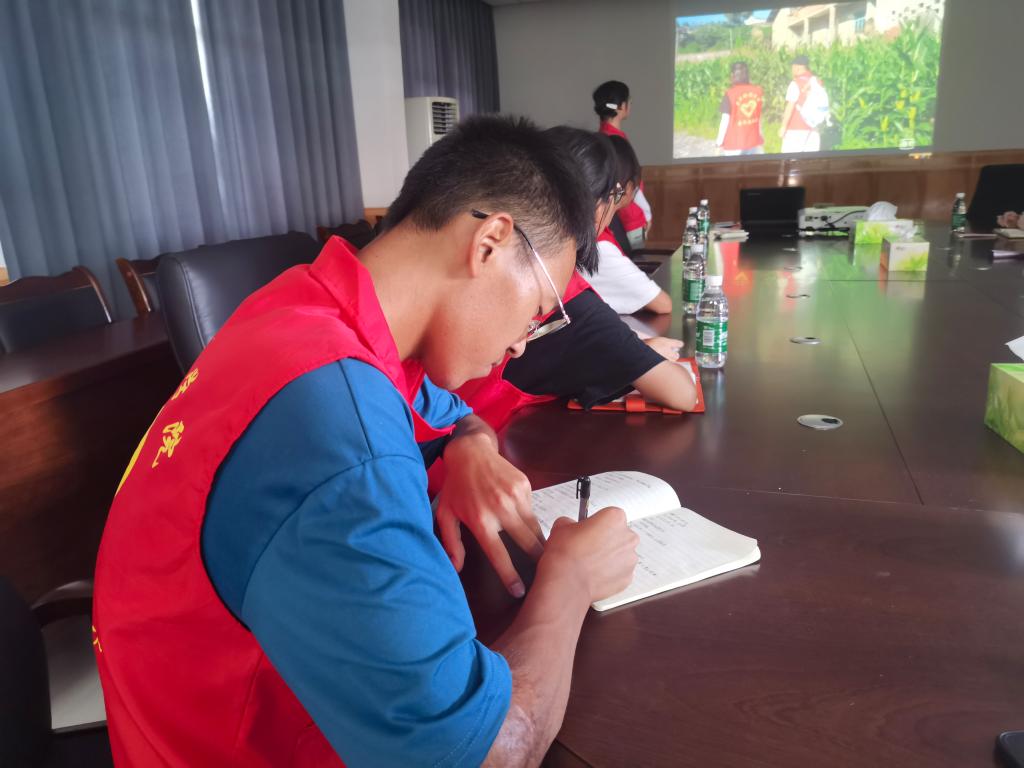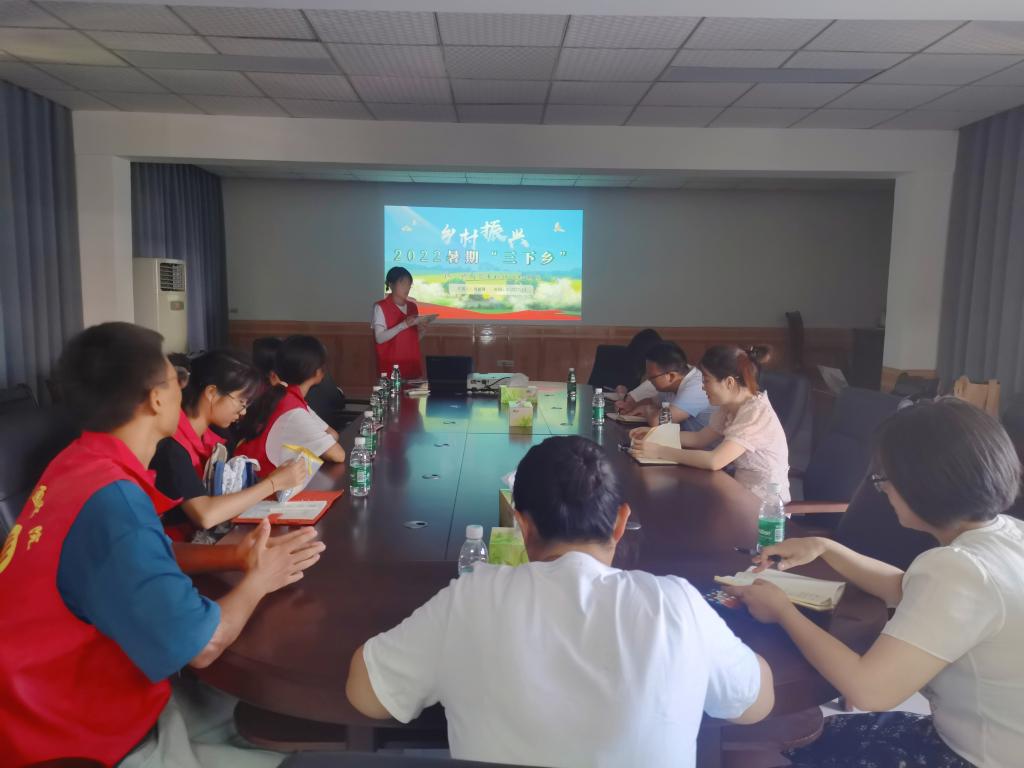 充实而有意义的时光总是过得很快,转眼间,历时七天的暑期“三下乡”社会实践活动进入尾声。为使同学们更加深刻地认识到“三下乡”社会实践活动的意义,总结经验,“壕情向前”乡村振兴促进团与石壕镇人民政府开展了总结交流会。出席本次会议的有石壕镇人民政府领导代表、“壕情向前”乡村振兴促进团的“三下乡”带队老师及参与本次实践活动的志愿者们。