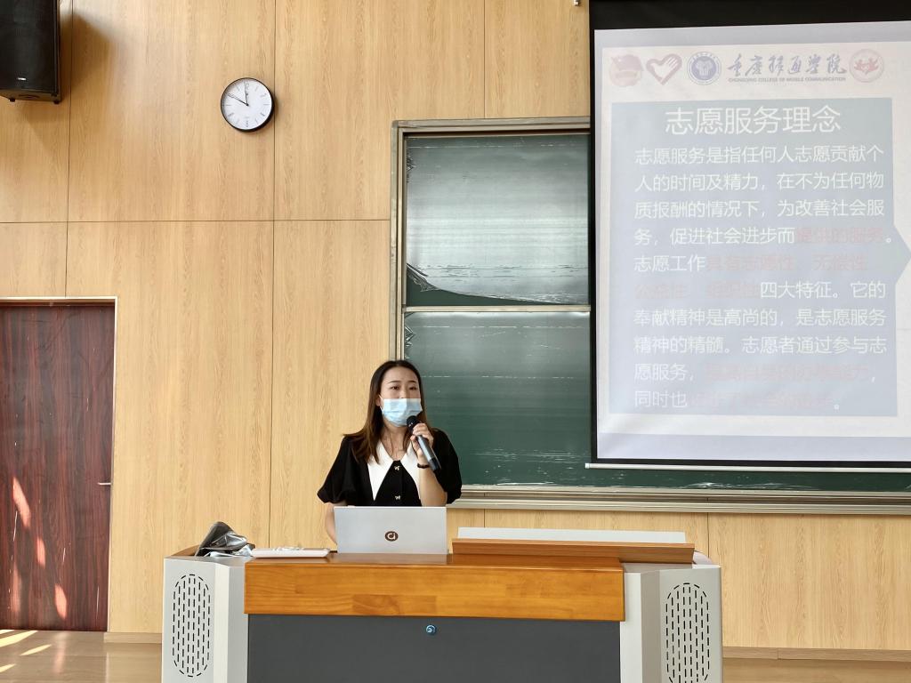 秋风送爽,鲜花馥郁,我校綦江校区即将迎来一批带着无尽喜悦与憧憬的莘莘学子。为切实做好我校綦江校区2022年新生入学报到接待工作,积极稳妥、热情周到、优质高效地把迎新工作做好,尤其是在疫情常态化防控下,达到“热情、文明、安全、有序”的工作目标,展现我校师生良好的精神风貌,并打造一支着装统一、训练有素、服务专业、热情有礼的志愿者队伍,校团委杨锦庆老师根据学校新生接待方案的统一安排,特制定迎新志愿者工作方案,于9月13日10:00在玉棠书院阶梯教室开展了我校2022年迎新志愿者培训动员大会。