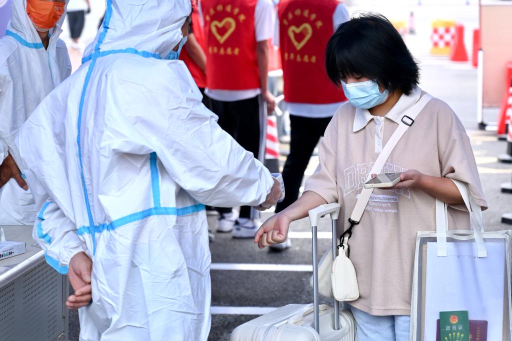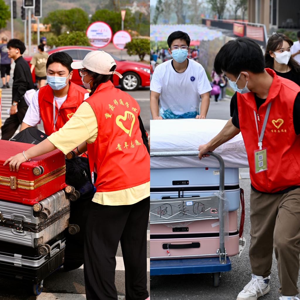 倾心做准备,翘首盼君来。疫情防控常态化,验双码测体温是必不可少的步骤,只有严密的防控措施才能保障同学们的安全。高举的指示牌,载满行李的“摆渡车”,还有一件件在眼前奔跑的红马甲,都能填充同学们奔赴山海的疲惫感。在这场全心全意、充满温馨的双向奔赴中,全体迎新志愿者用心守护、用爱服务,脸上的口罩掩不住洋溢着的热情,贴心暖心举措轮番上阵。