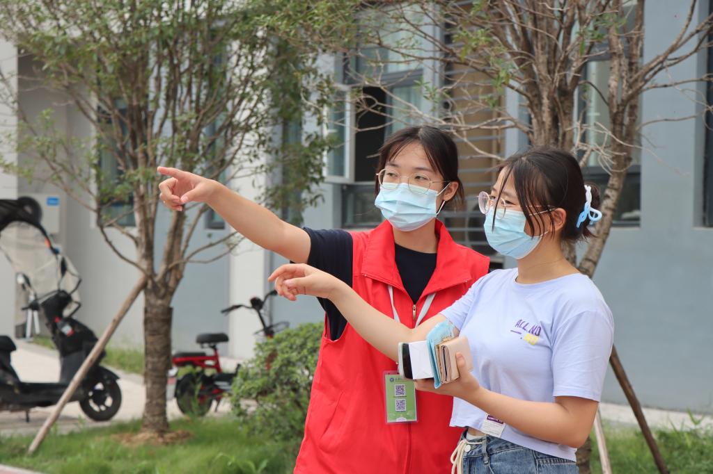迎新工作如火如荼,红马甲奔波在移通校园,到处都是忙碌的身影。志愿者们不惧酷热、不畏沉重,顶着烈日,推着推车为同学们服务。在校门口的接待点,每一趟车到站,新生和家长一下车,就有志愿者马上微笑着迎上去:“你好,欢迎来到重庆移通学院”,并卸下她们手中沉重的行李,将她们送到下一站——两码一证检验处。志愿服务点2的志愿者早已备好推车在检验处旁等待,检验成功后再一路“护送”到“入学资格认证处”和“各学院报到点”......就这样,志愿者们以接力的方式,一站一站的将新同学往上送,一批批的新生被安全送达各个书院。她们不厌其烦的为新生们解答各种疑问,无论是“托管搬运大师”、“人肉GPS导航”,还是“十万个为什么”之移通大揭秘,找他们准没错。