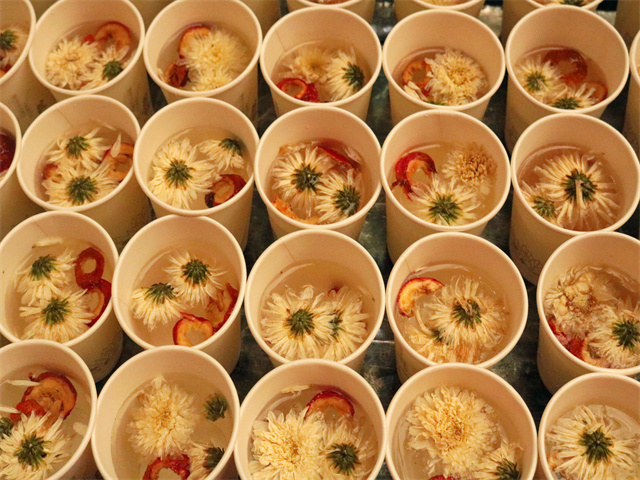 秋意正浓,菊花盛放,说到重阳节的文化内涵与传统习俗,与菊花不无关系。作为重阳节的代表符号,菊花有着养肝、明目、延缓衰老等功效。此次活动志愿者特地为爷爷奶奶带来菊花山楂茶,并冲泡放置温热,在表演过程中志愿者向爷爷奶奶们敬上热茶,送上秋天的第一份温暖和祝福。