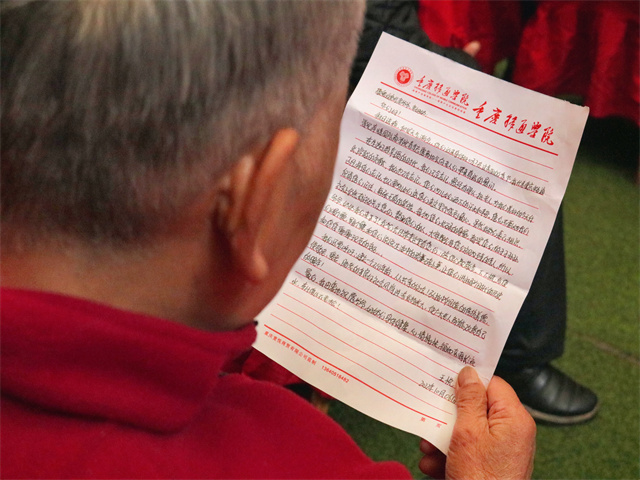 志愿者们在重阳佳节前通过书信写下了对爷爷奶奶们的祝福,并在信笺中分享自己的故事、生活,传递温暖与关怀。活动当天志愿者们将这些信笺送到了爷爷奶奶的手中,并为有阅读困难或者有眼疾的爷爷奶奶诵读信笺,让人感到无比治愈和感动,爷爷奶奶读完信久久不能忘怀,有人一遍又一遍地浏览,有人不停地翻看这张薄薄的信纸,有人小心翼翼折好紧紧攥在手中……或许这些信笺勾起了他们的思念,又或许带给了他们温暖和感动,这一幕就是志愿服务的意义吧。