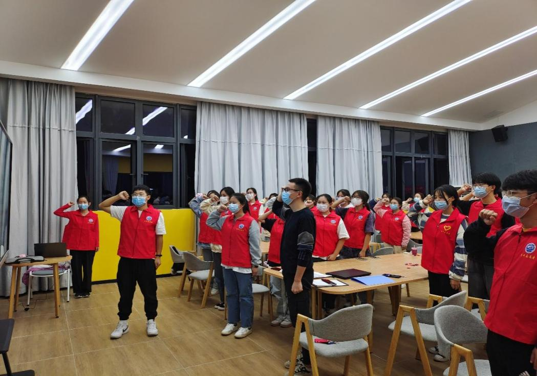 随后,志愿者代表带领全体志愿者身着红马甲进行宣誓。志愿者们高举右手,眼神坚定的念着宣誓词,在宣誓过程中明白想成为一名合格、光荣的志愿者,就要担起肩上职责,践行志愿精神,将“志愿服务源于心,奉献爱心始于行”志愿理念牢记心中。