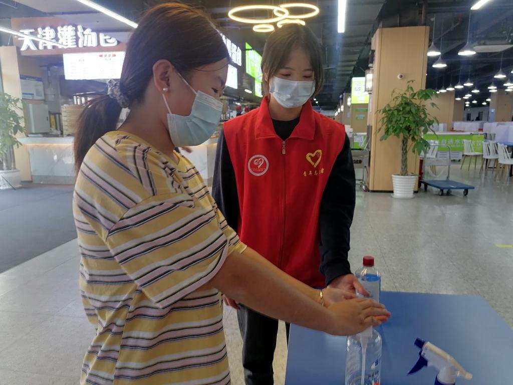 食堂宿舍齐上岗,教室操场同保障。17日,首批青年战疫志愿者开始上岗服务。在食堂、宿舍、教室、操场等服务岗位服务。食堂的志愿者们耐心细致,积极做好洗手消毒指引、购餐引导、维护秩序等工作,尽己所能为师生们提供良好的就餐秩序。门岗志愿者协助工作人员对进校人员进行信息登记和测量体温等工作。巡查志愿者在校园公共区域对不规范行为进行及时劝阻和引导。