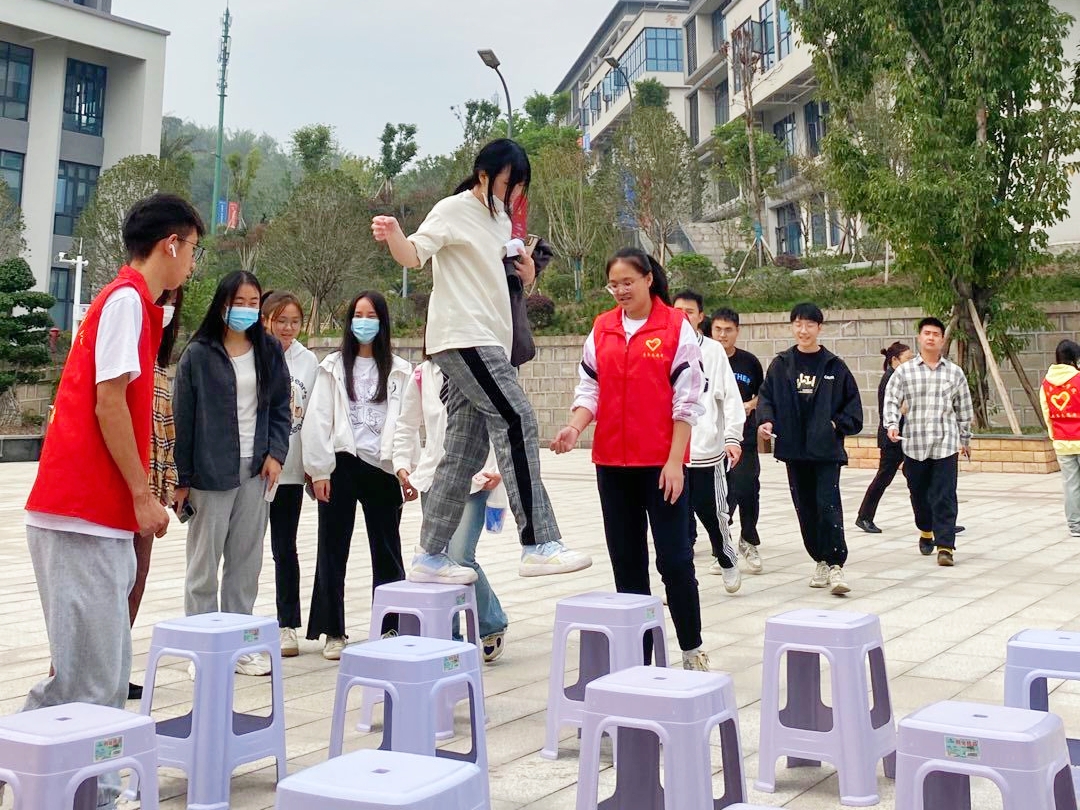 “飞夺泸定桥”是红军由被动变为主动作战的一个重要节点,更是共产党和国民党在时间上的一次较量。为了感受当年革命先辈们冒着枪林弹雨在冰寒的铁锁链上“飞夺泸定桥”的勇气、决心和毅力,同学们在志愿者们的帮助下,通过自己搭建“桥板”,体验过程当年革命先辈们在十三根铁索上竖铺着狭窄的木板,低头便是湍急的大渡河水的环境下“飞夺泸定桥”,最终齐心协力,一步一步顺利的通过关卡。