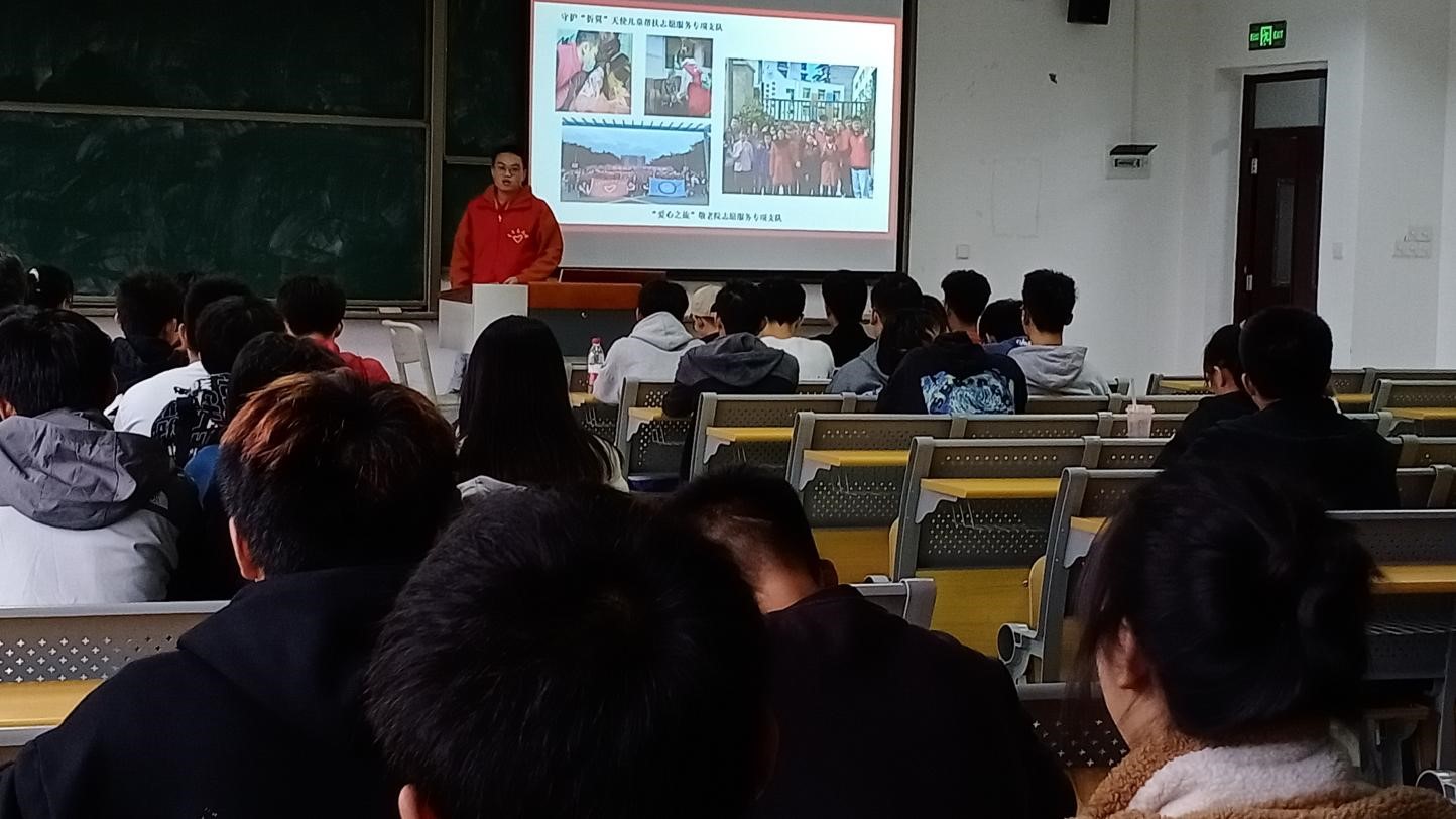 紧接着,志愿者通过ppt向同学们展示青协志愿者们以往出活动出任务时的一些照片,以提高同学们对从事志愿者服务的兴趣,同时也更便于同学们了解志愿服务。在展示的同时,志愿者也对活动照片一一进行了介绍,并且和同学们分享了一些自己的见解和看法。同学们专心致志地看着ppt上的内容,听着志愿者的讲述,整个教室内的氛围十分融洽。培训过程中同学们积极配合,志愿者的讲解也十分精彩。此次培训提高了同学们的志愿服务意识,增加了同学们对志愿服务的兴趣与了解,有着极大的意义!
