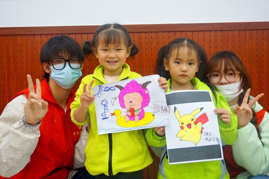 翻山越岭只为一场遇见,全力以赴只为一次改变。课堂上,一件件身着红色志愿服的小老师们与小朋友们积极互动,为他们讲解绘画色彩搭配知识。欢声笑语中,小朋友们将自己对世界的理解展现在一张张画纸上。孩子们天真烂漫地在画纸上勾画出图案,每一笔色彩都涂写了他们眼中的美景和独特的心灵感受。