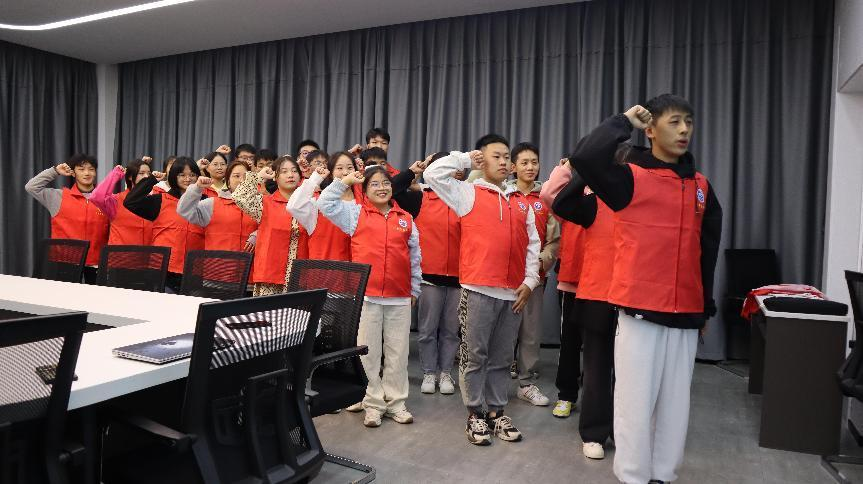 随着见面会进入尾声,支队长江文豪同学带领着“防艾小天使”身着红马甲进行志愿者宣誓。干事们高举右手,眼神坚定的念着宣誓词,在宣誓过程中明白志愿者是一份责任,一份担当,一份使命,一份荣耀,也是一份挑战。以不惧艰难的精神,尽己所能,不计报酬,帮助他人,服务社会,践行志愿精神,做好志愿服务工作。