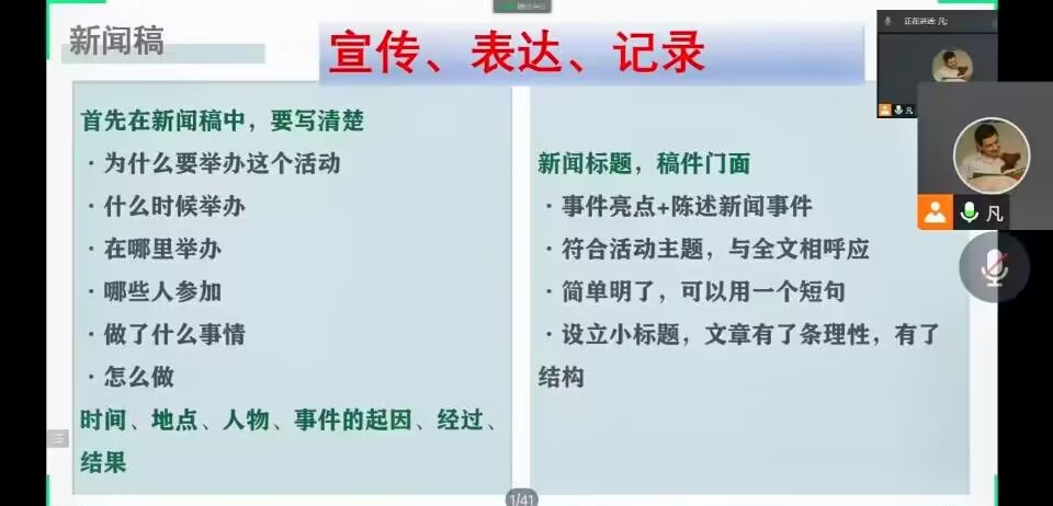 合川校区培训活动于线上进行,会议伊始,主席王若凡再次欢迎支队员的加入,同时表达了之后一起共事的期待。此次培训首先为支队员讲解了新闻稿、软文、个人总结的撰写,重点强调了其格式问题,列出了错误案例,进行了纠正。在接下来的实践操作中,主席王若凡对照片裁剪、院系级表格的制作、活动策划书的格式都进行了“手把手”式教学。并鼓励大家积极尝试,踊跃参与。