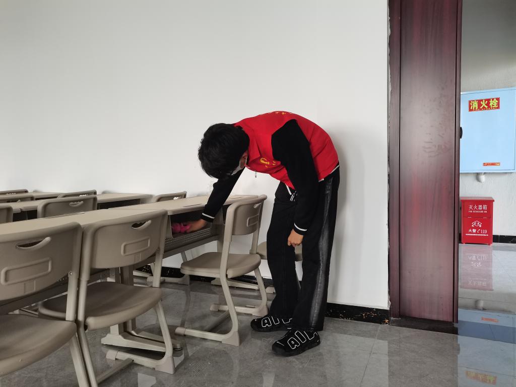 人心齐,泰山移。守护校园,爱护校园,是每个移通学子的义务和责任。在教室内遇到同学时,志愿者们也会积极宣传节能环保的知识和其重要性,温馨提醒同学们将自己的垃圾带走并扔进垃圾桶里,离开教室时确保关灯关门,让节能环保的理念在同学们心中埋下种子,看着一间间干净整洁的教室,同学们在里面上课时的舒心,志愿者们的汗水也是值得的!