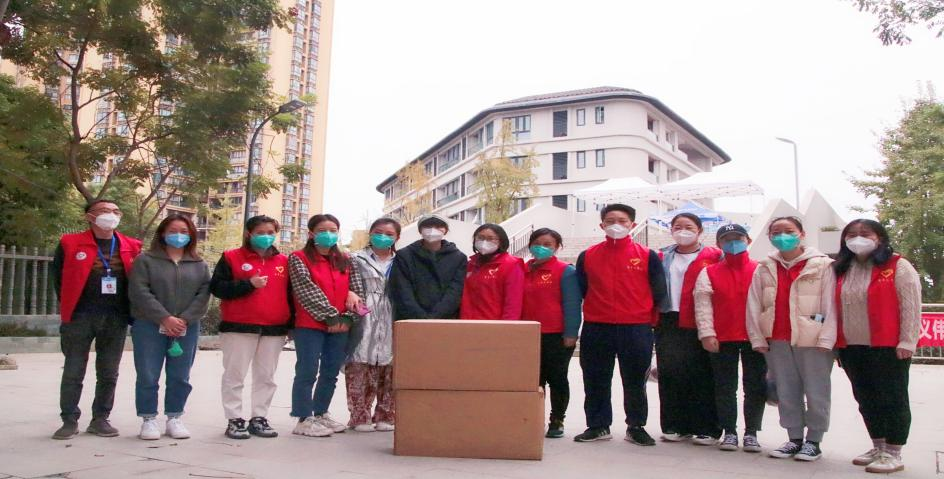 11月12日下午,12600片卫生用品被送到校园各个宿舍楼栋之下,消杀、搬运,很快,物资便完成了交接。