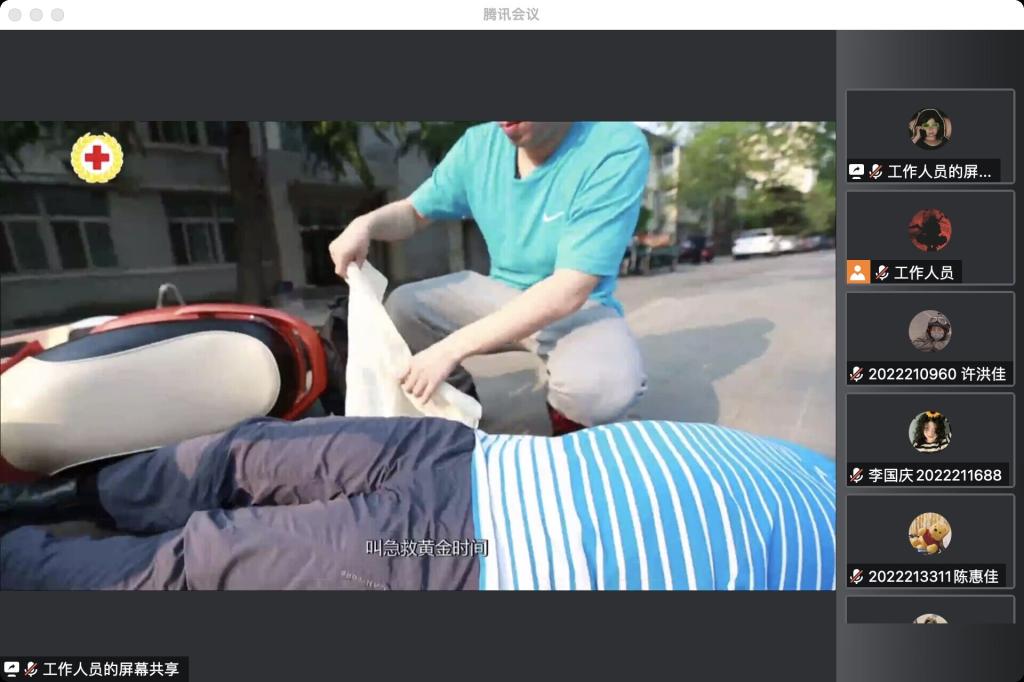 在通过视频讲述和传授红十字精神后,同学们不仅掌握了新的应急救援技能,还理解了红十字精神的内在含义,为了使大家加深印象,把“海姆立克”急救法牢记于心,并在突如其来的事故中熟练运用,同学们采取了线下的模拟演练,亲自推敲该技能的手法与技巧,最后,以线上答题的方式来检验大家的掌握程度。这次的讲座,大家都满载而归,但冰冻三尺非一日之寒,希望大家在平日里也能坚持练习,逐渐成长。本次学到的不仅是应急救护知识,更让同学们认识到了,生命的脆弱和庄严。与生命赛跑我们需要勇气和智慧,只有正确地把握救护时间,我们才能赢得更多宝贵的生命!