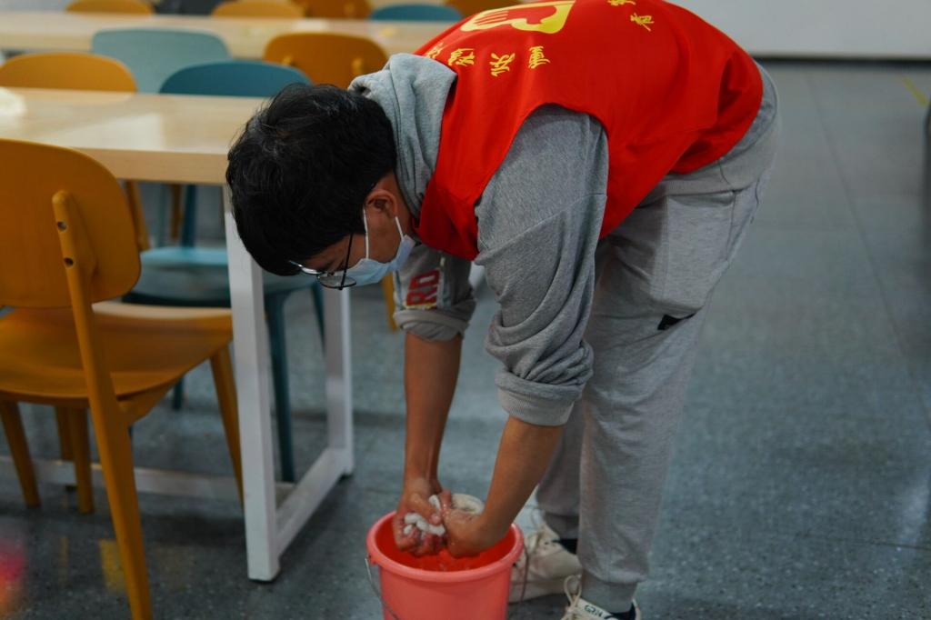 一餐一饭皆不易,一言一行露真情。在进行志愿服务的过程中,食堂阿姨的职责虽暂时被志愿者们接替,但她们仍紧跟志愿者身后,心疼志愿者们双手在冰水里来回清洗餐桌,比自己的孩子还放在心上。疫情突袭,食堂阿姨们也被封控在学校不能回家,在与阿姨的交谈中,志愿者们希望她们在工作的时候多注意身体,保持良好心态,同时也感恩她们的默默守护。听到志愿者们一声声关切的问候,一句句暖心的话语,食堂阿姨的欣慰之情溢于言表,对于志愿者们的到来甚是惊喜和感动。