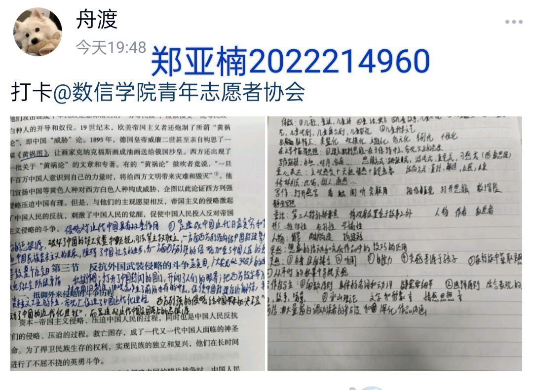 线上学习打卡篇。活动方式是拍摄网课课堂的相关笔记、宿舍学习的Vlog、阅读书籍的书评等等。读书可以让人保持思想活力,让人得到智慧启发,让人滋养浩然之气。疫情下,同学们更当砥砺奋发,勤学苦读。真正的优秀不是别人逼出来的,而是自己和自己死磕。春华秋实,追光的人终会光芒万丈!