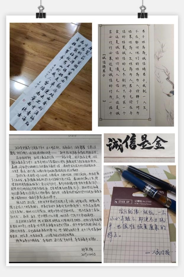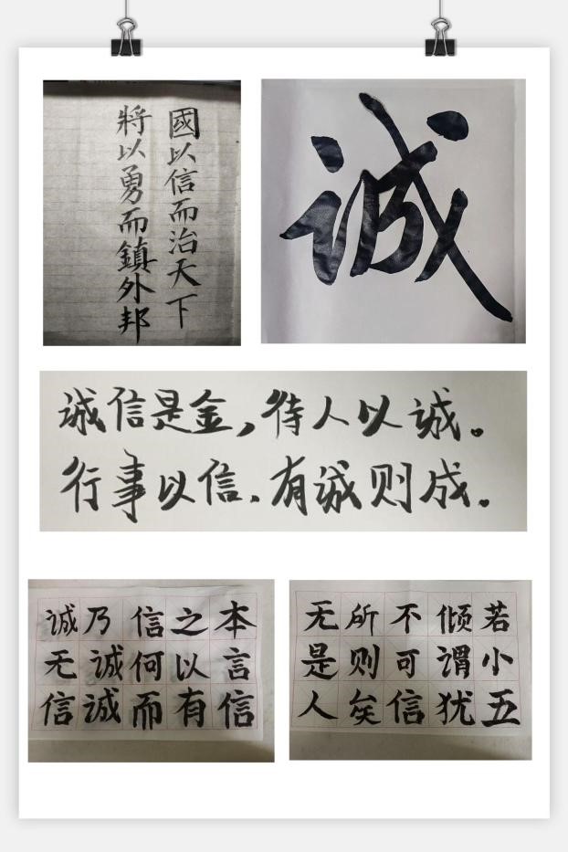 为进一步加强青年信用体系建设与传统文化相结合,打造“文化青信”中坚力量,强化青年诚信意识。11月22日,青年信用体系建设主题系列活动第二期:“用诚信书写战‘疫’合力”拉开序幕,600余名同学合作完成580余份书法作品,极力展现出“疫情防控,青信有我”的移通大家精神。成就了培育有时代特点的青年诚信文化,激发了同学们在创作中绘制青信,在青信中激发创作的强劲生命力。给同学们一个展现的舞台,进一步加强同学们的“文化青信”力度,用文字表达诚信抗疫之情。多元化、多风格的书法作品最终表达的是同样一个心声:疫情防控,青信点亮移通。