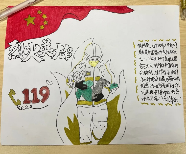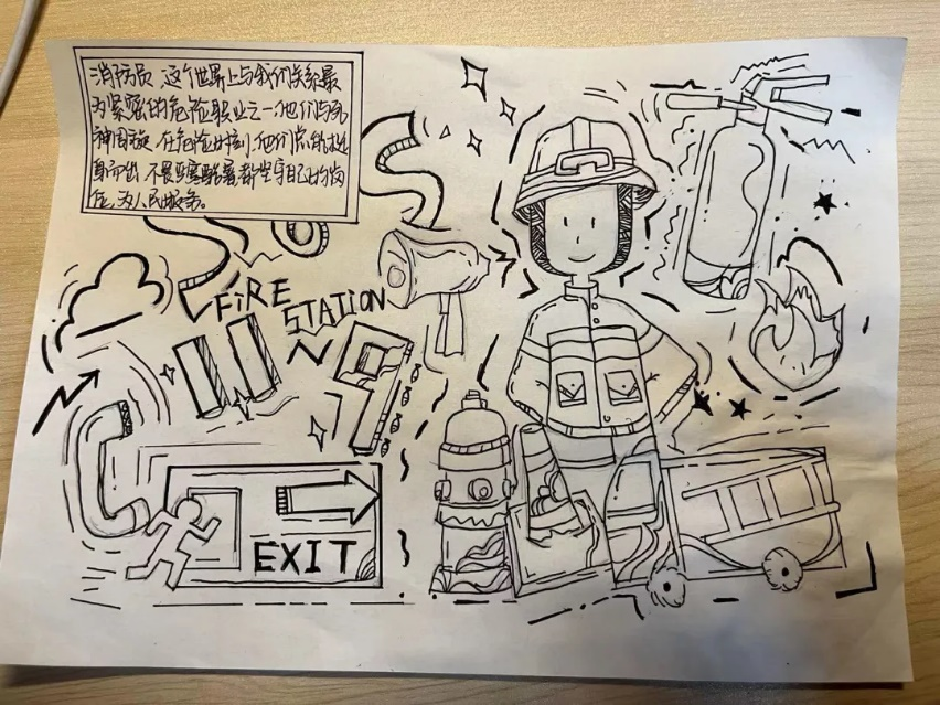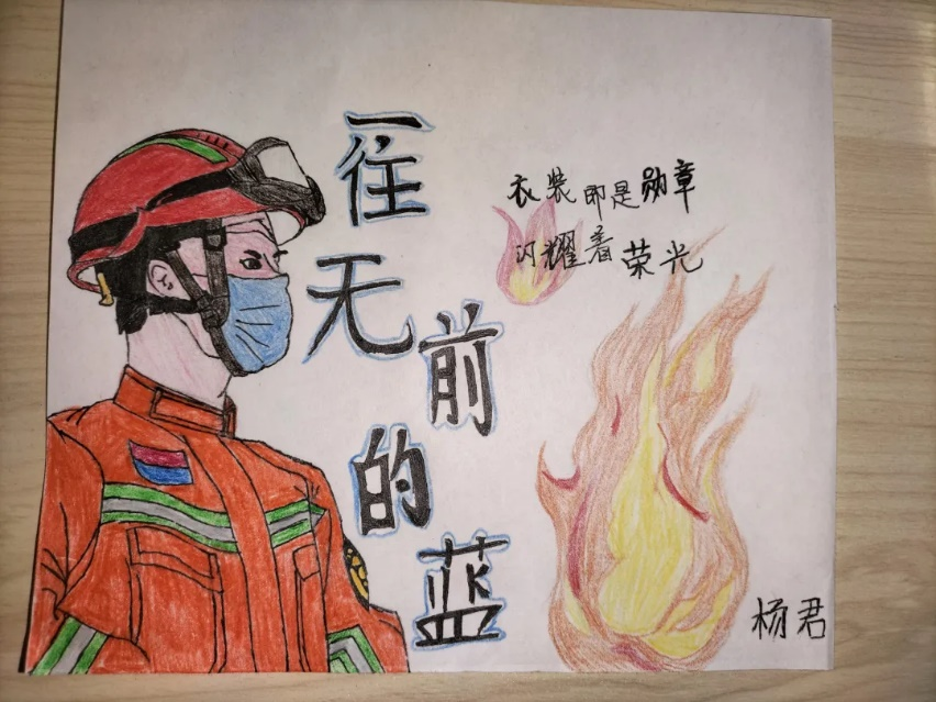 在疫情如此严重的当下,不仅仅要注意疫情防控,也要时刻注意消防安全,️为了使疫情防控和消防安全两不误,德国工程学院青年志愿者协会特此举办了[最美逆行者——我心中的“火焰蓝”]特别活动。画出自己心目中的消防形象,写上自己对消防员哥哥的寄语。就让小德带领大家欣赏下同学们优秀的作品与收获吧!