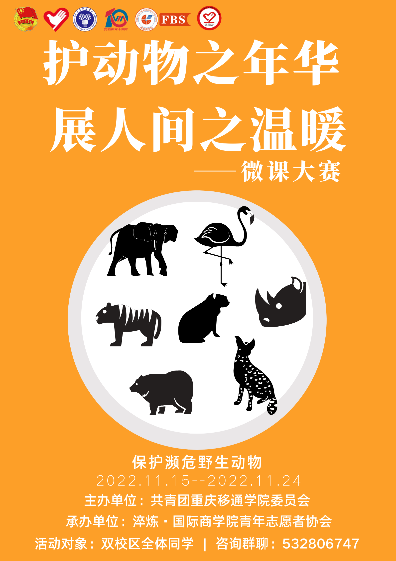 为推动绿色发展,促进人与自然和谐共生的发展理念。淬炼·国际商学院青年志愿者协会结合实际开展了“护动物之年华,展人间之温暖”微课大赛,征集了同学们关于保护动物、维护动物多样性的微课视频。