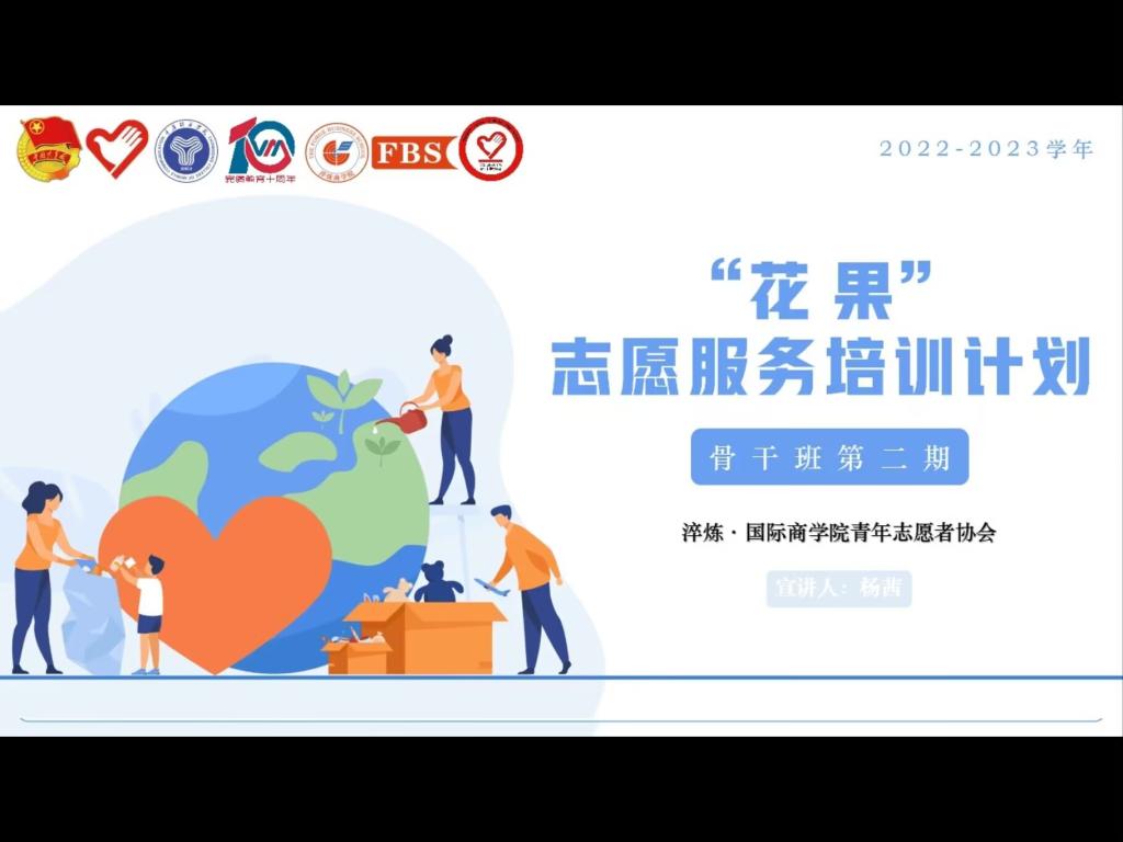为让2021级、2022级各班班团负责人以及青年志愿者协会干事们更好的了解志愿服务,强化对志愿服务的认识,走好志愿服务之路,淬炼·国际商学院青年志愿者协会分别于11月20日、11月25日线上开展了花果培训骨干班第二期及花果培训基础班第三期活动。