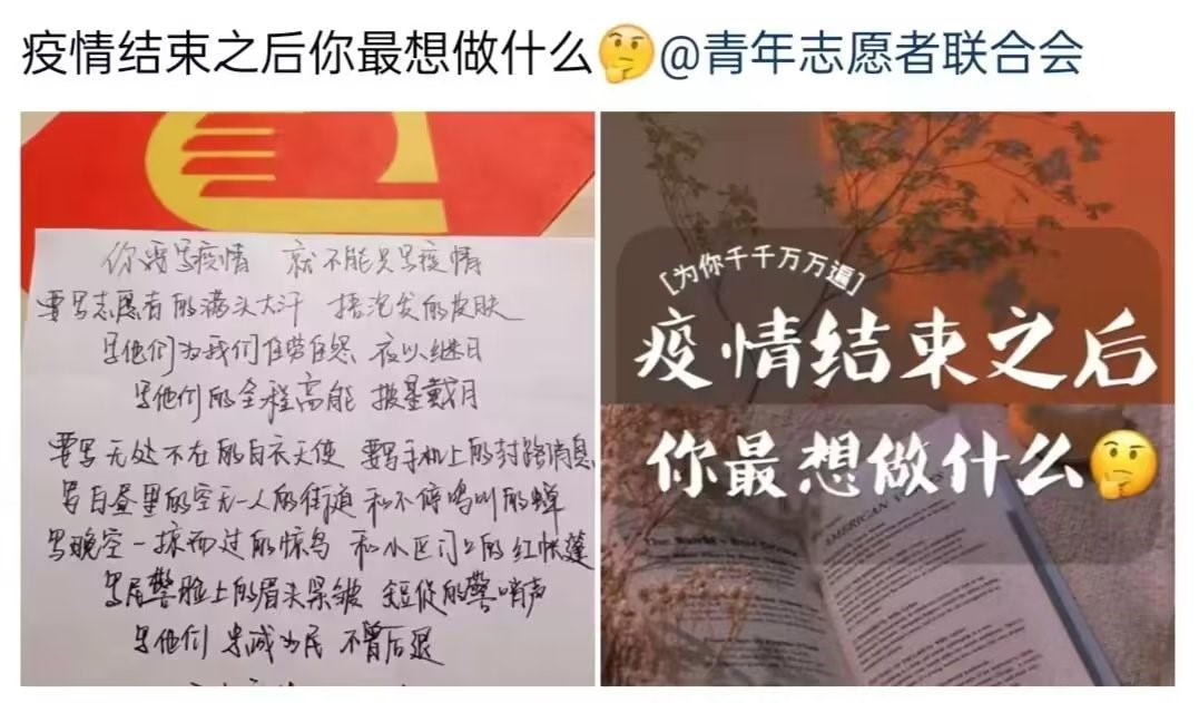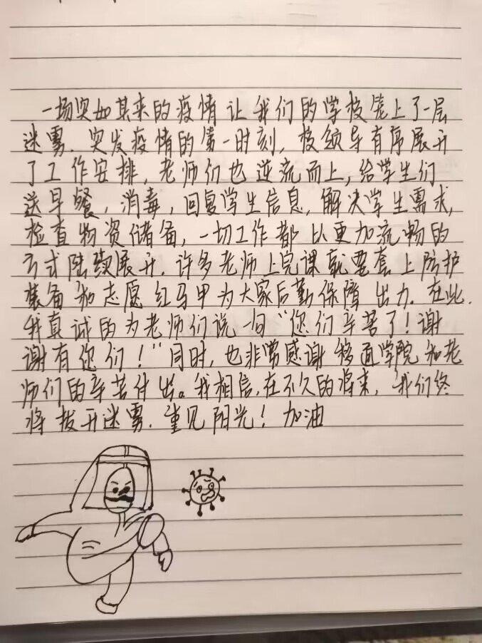 为了给大家平淡的封寝生活增添一丝乐趣,同时也为疫情防护人员带去我们的一份温暖,迅速发起“三行情书·疫情无情,人有情”微日记活动,为同学们搭建了一个表达情感的平台。爱要大声说出来,此次活动旨在以“三行情书”的形式,希望同学们积极勇敢地表达出自己对疫情中的逆行者和同学的感激、欣赏之情。2213名同学现身腾讯空间、微博,在大家合力完成的2152份作品中,许许多多的情谊化作切切三行,从字里行间流露出的那些细腻情感,充满了感激,每一句都带给我们真切的感动。