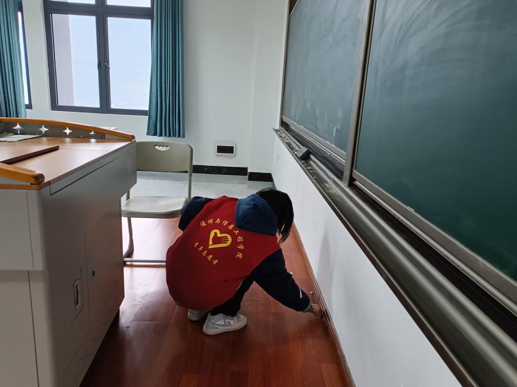 2022级电子信息类卓越20班的同学们在两日中午12:30—13:30分别于仁者楼、勤者楼成功开展了“绿色指尖”低碳节能志愿服务活动。活动中,同学们有序分为三组,前往教学楼打扫。他们中的每一位志愿者都带着最饱满的工作热情,在一间一间教室中穿梭,拾起同学们上完课后被遗留下来的垃圾,将写满粉笔字的黑板擦净,关掉遗漏的白炽灯,收集同学们忘带走的物品并送到了失物招领处。经统计,志愿者们共拾得40件丢失物品。