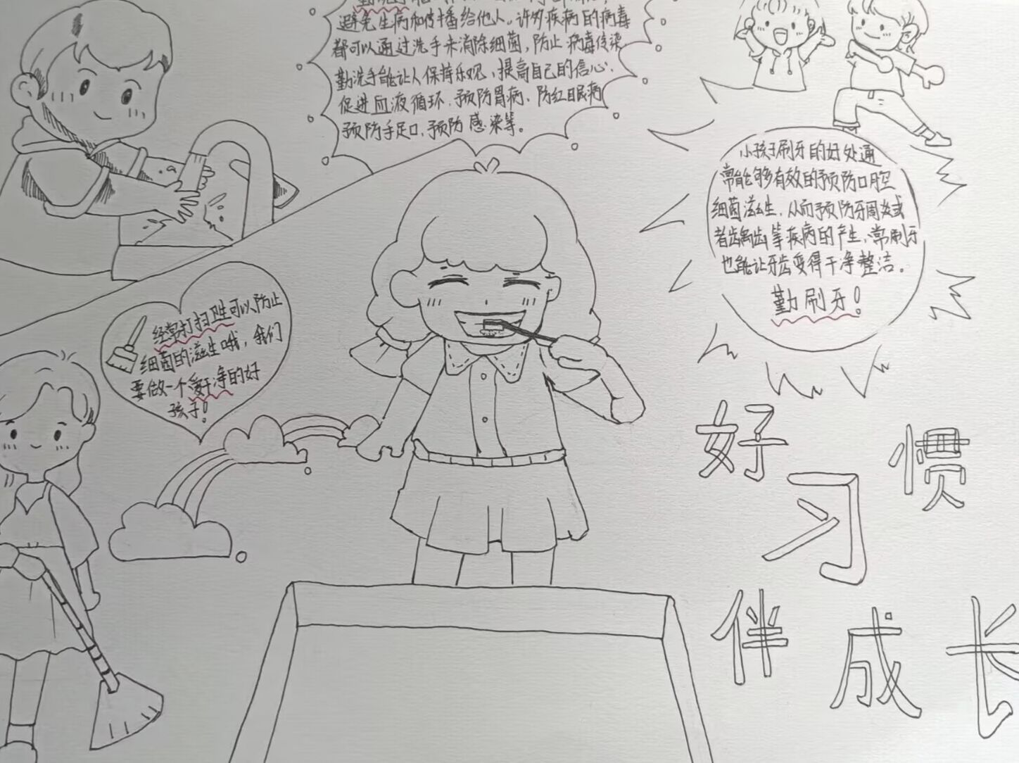 参与者绘制以“养成好习惯”为主题的手抄报,用一笔一画绘成的孩子的模样希望小朋友们能像手抄报上的孩子一般,养成好习惯,健康快乐成长。