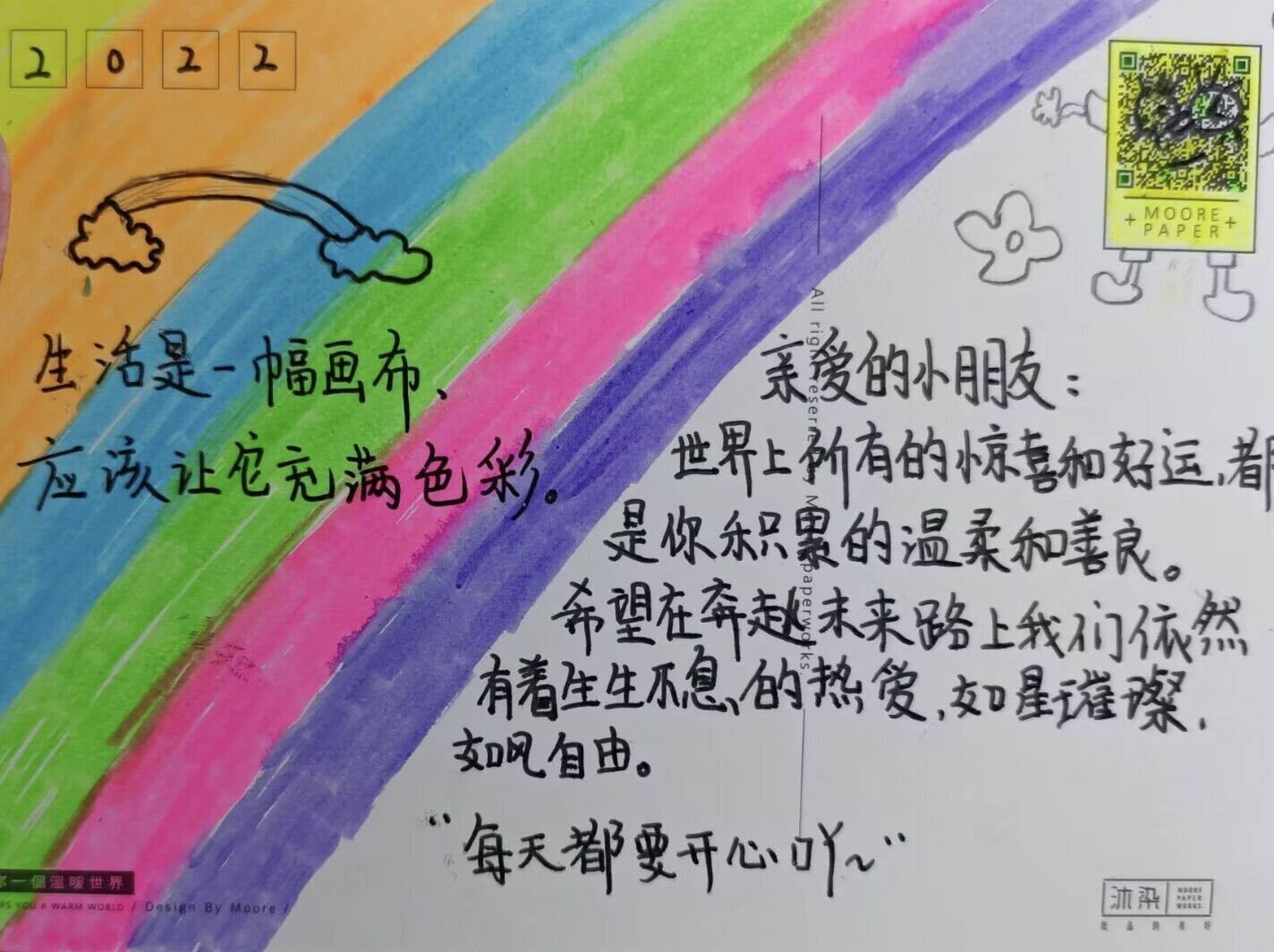 活动最后,志愿者们将收到的手写信、手抄报、简笔画、明信片拍成图片、制成相册,与视频一起筛选并打包发给登瀛学校的主任。相信收到来自志愿者们的手写信和绘画祝福,小朋友们的脸上一定会洋溢出笑容吧!用文字和绘画一起走近、理解、倾听、欣赏、鼓励小朋友,用真诚的心去温暖他们,伴随小朋友们成长,让小朋友们快乐的童年更加多彩,让他们感受到移通志愿者“大朋友”们的关爱!亲爱的小朋友:请你平安又快乐,慢慢地长大喔!