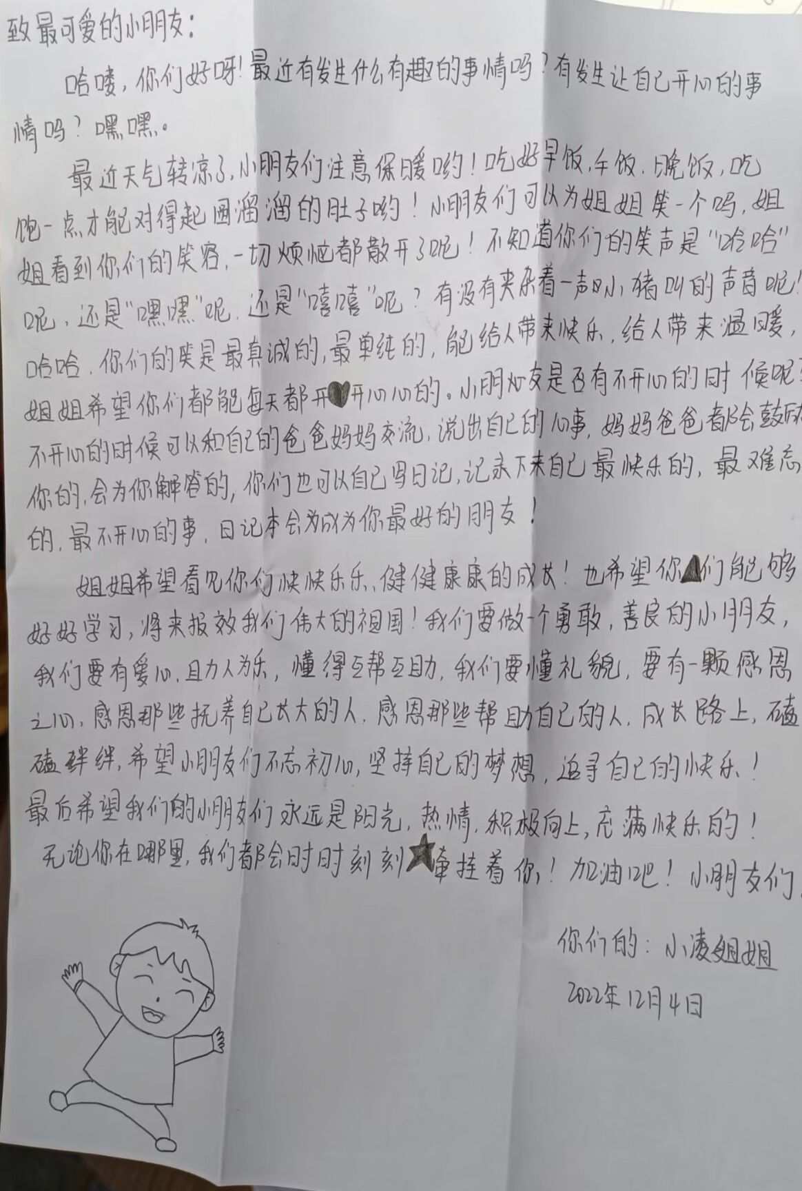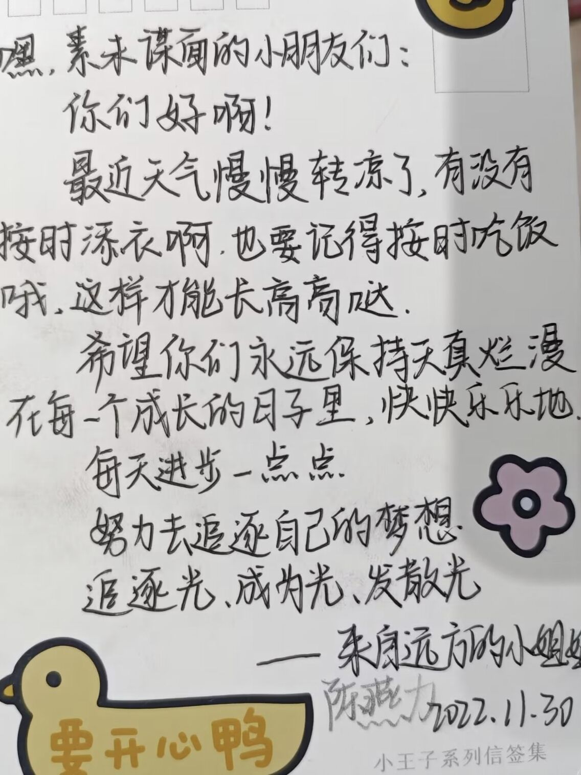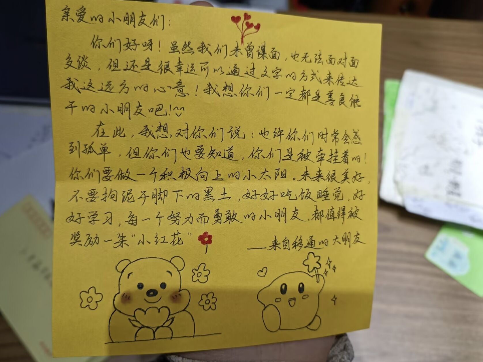 参与者们给小朋友们写上自己对小朋友们的祝福与鼓励,并贴心地在给小朋友们的手写信上附上了可爱的卡通画,对小朋友们的温暖都藏在了手写信的一字一句当中。