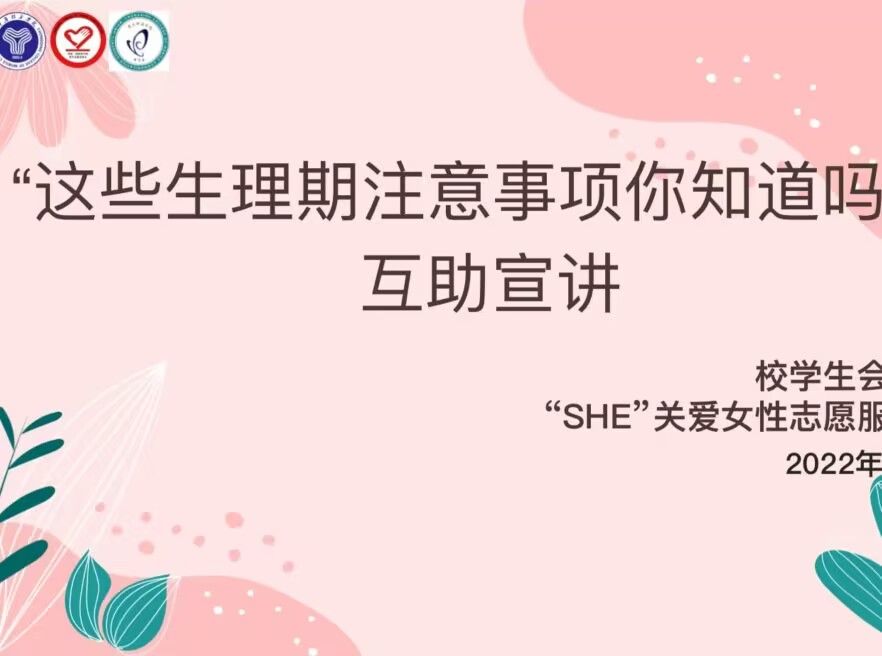 2022年12月14日,重庆移通学院校学生会权益女生部与淬炼·国际商学院青年志愿者协会“SHE”关爱女性志愿服务专项支队携手组织开展了“这些生理期注意事项你知道吗?”线上互助宣讲活动,旨在帮助更多的女生了解经期间的生理健康知识。本次活动由“SHE”关爱女性志愿服务专项支队的支队长蒲丹丹和陈荷玉露主讲。