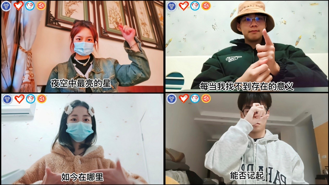 此外在2022年12月20日——12月28日,守护“折翼”天使儿童的志愿者们通过联合“心语娃娃”特殊教育志愿服务专项支队的队员,“益”起唤醒小耳朵,录制了一场“夜空中最亮的星”手语接力视频,点亮每一颗星、点亮每一位听障儿天使的世界。简单的手语代表着真挚祝福,每一个动作,都将给“折翼”小朋友带来一丝温暖,每个孩子的童年,都值得体验有仰望星空的乐趣。
