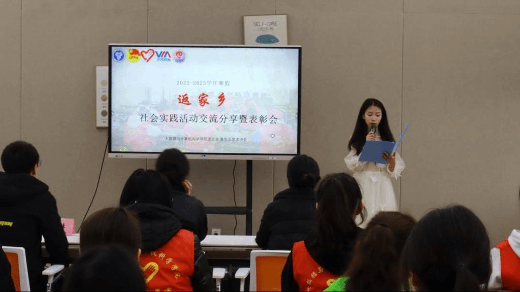 为了学习好、宣传好、贯彻好党的二十大精神,认真贯彻落实习近平总书记关于青年工作的重要思想,广泛引导新时代大学生在返家乡的社会实践中去建设家乡、服务家乡,在2023年寒假期间,大数据与计算机科学学院多名青春学子参与了2023年寒假大学生“返家乡”社会实践活动。为总结经验、评选典型、表彰优秀,2023年2月24日,学院在瀛溪书院形而上思辨空间召开了2023年寒假大学生“返家乡”社会实践活动交流和暨表彰会。学工办主任阙小梅老师、团总支书记兰宇老师、辅导员李进老师参加了交流表彰会。