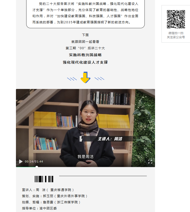 志愿者们回到家乡,带着对青春的志愿,带着对服务人民的信念,50余名同学分别在重庆市綦江区人民政府、共青团渝中区委,以及山西介休市人民检察院、河南兰考县桐乡街道办事处等党政企事业单位、社会机构组织中参与工作。2021级数据科学与大数据技术贾轩同学来到家乡街道参加服务,在平定共青团官微上分享了“返家乡”心得,2022级数字媒体技术周洁同学担任渝中区“00”后讲二十大宣讲员,在“渝中青年”官微上展现风采……志愿者们通过开展政务、企业、公益、社区、文化、乡村振兴、网络“云实践”等志愿服务,实打实地让自己进一步了解国情、感知社会、热爱家乡、服务群众志愿梦想。