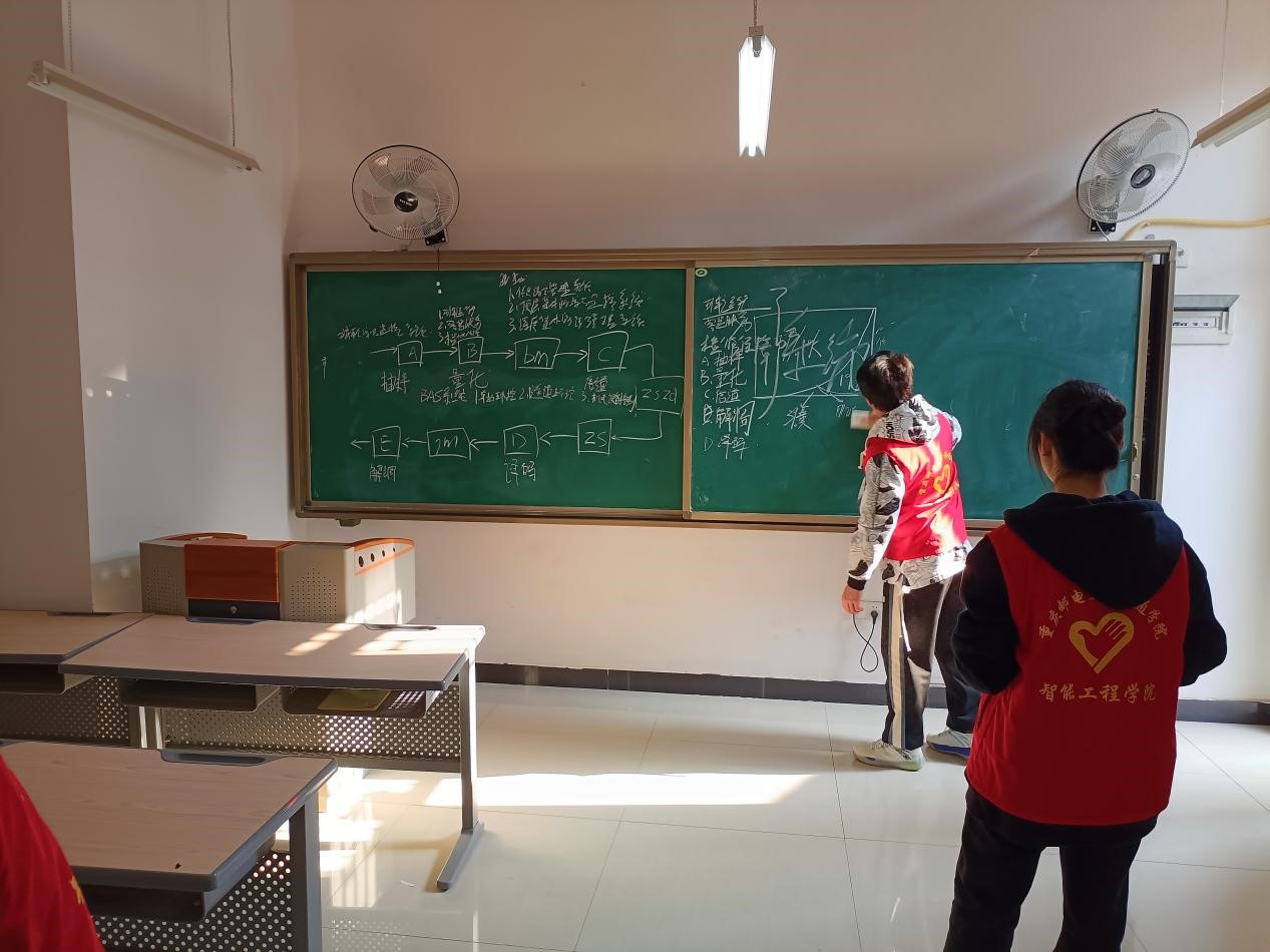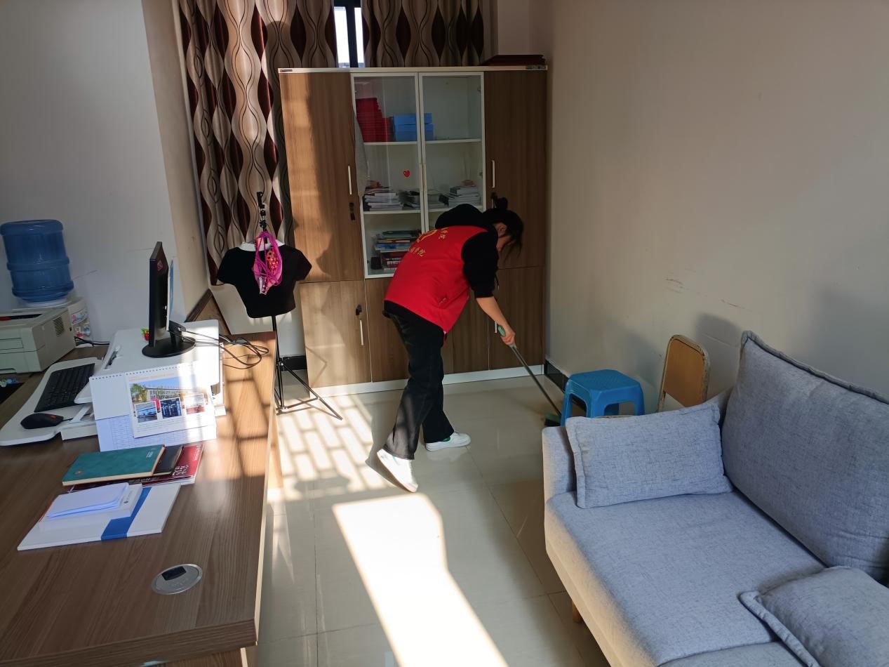 志愿者们拿好工具进入各个教室,争取既有效率又有速度,经过一段时间的忙碌,清扫完的各个书院变得更加整洁,这些书院的教室桌椅整齐,黑板干净,讲台上的物件整齐有序。辅导员的办公室也是志愿者们打扫的区域,利用办公室内的清理工具,扫去角落的一些灰尘,倒掉垃圾桶里的垃圾,干净整洁的书院看起来更加有生气了。
