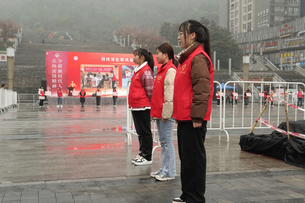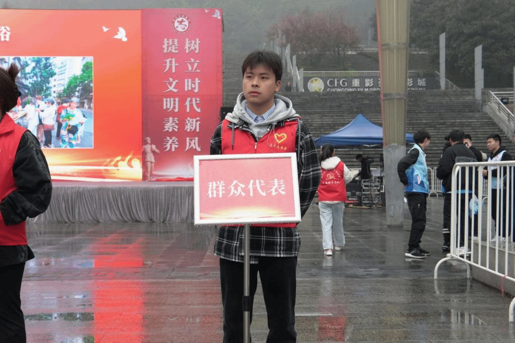 哪里有需要,哪里就有志愿者的身影。在即将上岗服务前,綦江区团委负责人召集志愿者进行岗前培训和分配任务,培训后志愿者们正式上岗,为此次活动贡献青春力量。尽管天气寒冷,但也抵不过志愿者们的饱满热情,他们在场外为参会人员指引道路,在入口处协助区团委工作人员进行签到,在场内引导参会人员到达指定位置。他们用实际行动去践行“用青春书写责任,用微笑添彩大会”,他们始终保持那一份初心,成为此次綦江区“学雷锋月”“重庆文明行为促进月”启动仪式暨创建全国文明城区攻坚誓师大会最坚韧的后勤保障,彰显出移通学子朝气蓬勃的活力和认真负责的态度。