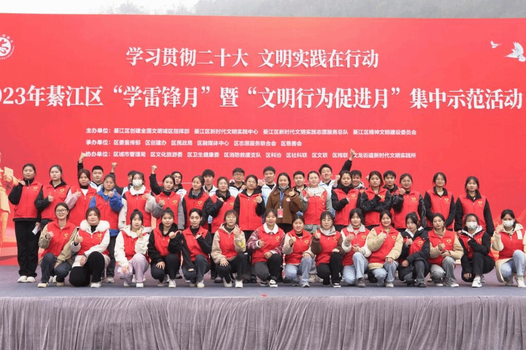 万物有诗,文明有你。近年来,越来越多的大型赛会活动在重庆举办,我校作为大型赛事活动的主要招募高校之一,曾组织志愿者参与2022年北京奥运会、中国国际智能产业博览会、中国西部国际投资贸易洽谈会、中华龙舟大赛。綦江区正着力建立全国城市,为在宣讲中引导,加强信念教育,綦江区团委组织开展2023年綦江区“学雷锋月”“重庆文明行为促进月”启动仪式暨创建全国文明城区攻坚誓师大会。重庆移通学院积极响应号召,40余名志愿者于3月3日前往綦江区营盘山广场助力綦江区誓师大会,保障大会台前幕后相关工作的有序进行,为大会的有序进行打下坚实保障。