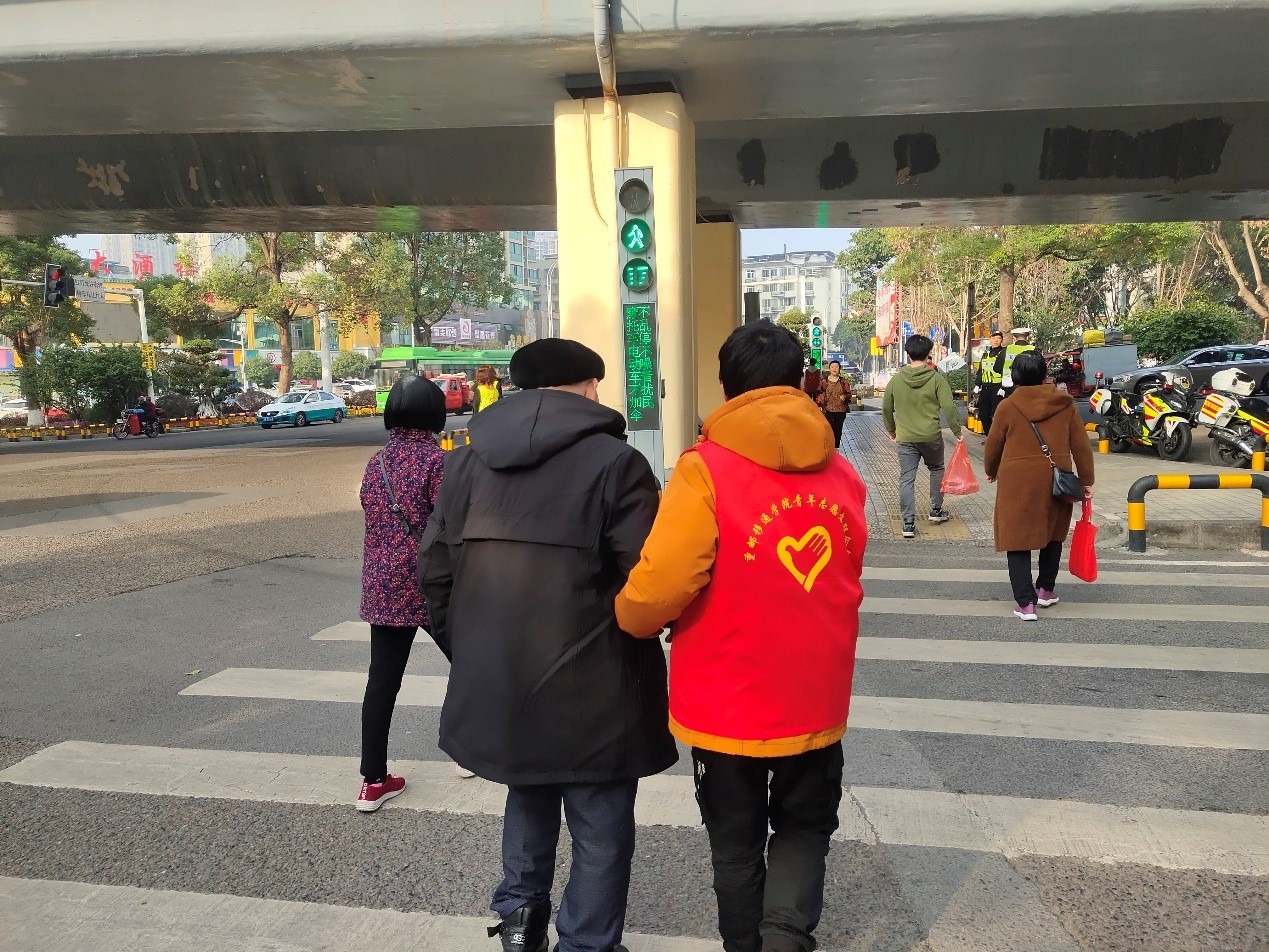 在志愿活动的过程中,志愿者们引导市民遵守交通规则等候红绿灯、搀扶老人安全过马路、劝诫车辆礼让行人减速慢行等,始终坚守岗位、各司其职,主动引导市民文明通过斑马线。在温暖的阳光下,志愿者们的激情饱满给这座城市增添了一丝温暖,遵守交通规则的行人给这座城市增添了新活力。
