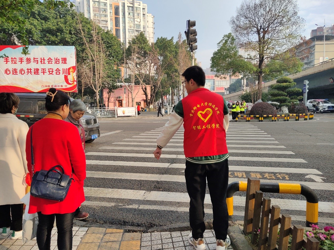 为了向大家更好的普及交通安全知识,提高市民遵守交通规则的意识,2023年3月4日上午9点,智能工程学院“知交规,行安全”交通文明志愿服务专项支队联合合川区公安局交警支队合阳勤务大队在涪江大桥开展交通执勤活动。