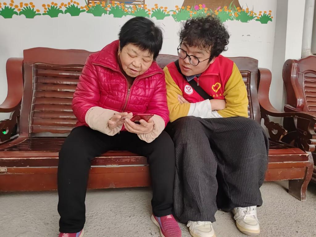 老年公寓现场,志愿者与老人们促膝围坐,亲切交流,特别是其中一位奶奶热情拉着志愿者和其他老人分享自己制作家常菜的趣事和制作过程中遇到的难题,大家集思广益,你一言我一语,难题迎刃而解。