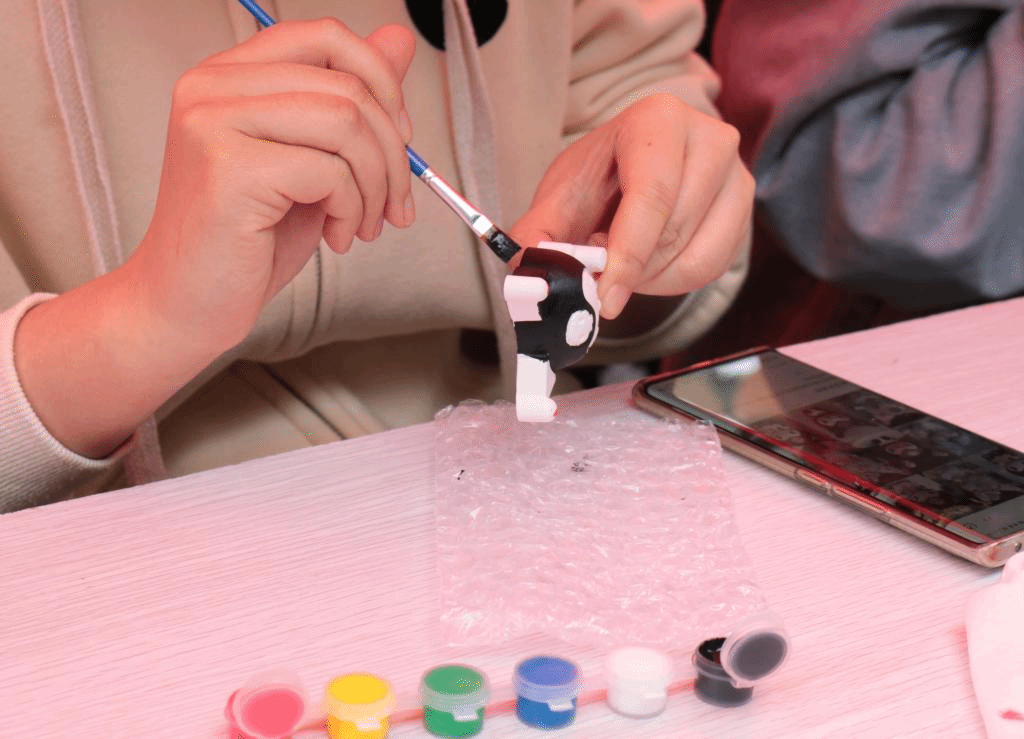 “马兰开花二十一,二八二五六……”跳皮筋时的童谣再次响起,踢毽子的欢笑此起彼伏,一朵朵手工花在指尖旋转,色彩在石膏娃娃身上肆意生长,今天把女孩的童年时光从流年里搬到活动现场,让我们把童年再放映一遍,做回小孩儿。浪漫不渝,欢笑永存,希望如春天花朵般美好的女孩们,永远被爱和欢乐包围。